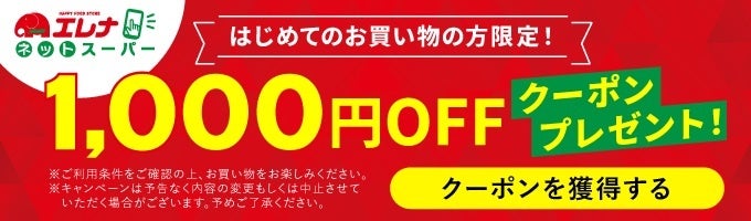 エレナネットスーパーで初めてお買物をされるお客様限定で、1,000円OFFクーポンをプレゼント!