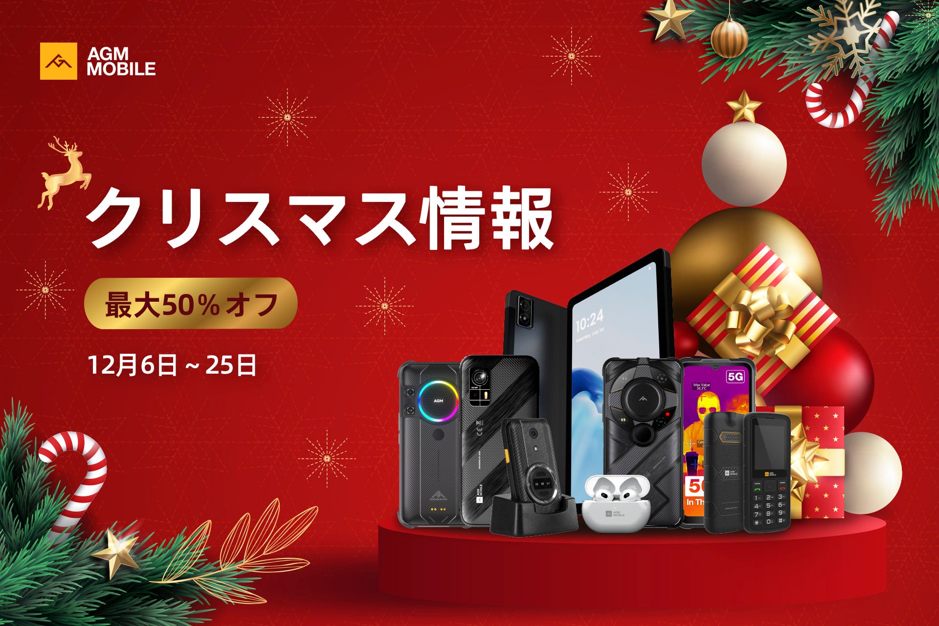 東京、日本 – 2023年12月14日 – ラギッドスマートフォンとタブレットの製造において10年以上の経験を有する優れたブランド、AGM Mobileは、待望の年次クリスマスセールを発表いたします。この年末年始、日本の顧客は、耐久性のあるデバイスの幅広いラインナップで最大50%OFFの割引を楽しむことができます。