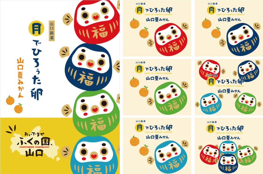 山口県の新しい観光シンボルマーク”ふくだるま”をパッケージデザインに使用した【新商品「月でひろぅた卵 山口夏みかん」を2月22日(木)に発売】