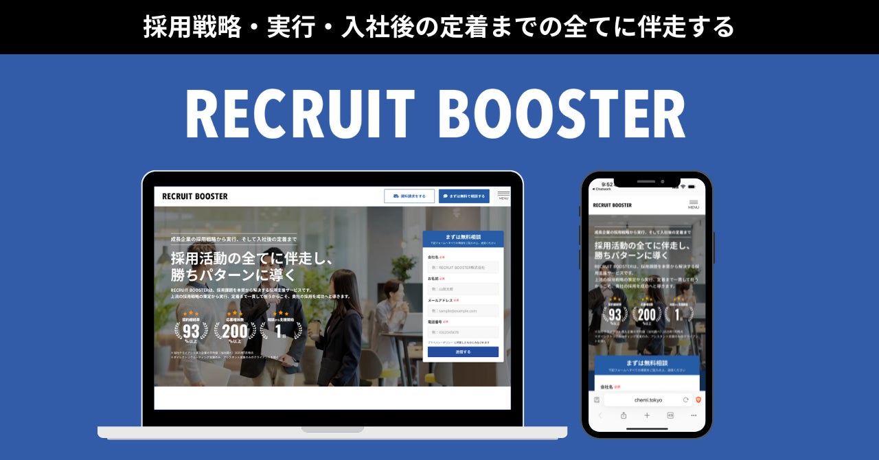 CHEMI株式会社(所在地:東京都、代表取締役:内藤貴皓)は、2025年10月10日付で社名を「RECRUIT BOOSTER株式会社」に変更いたしました。これに伴い、新サービスサイトも公開いたしました。