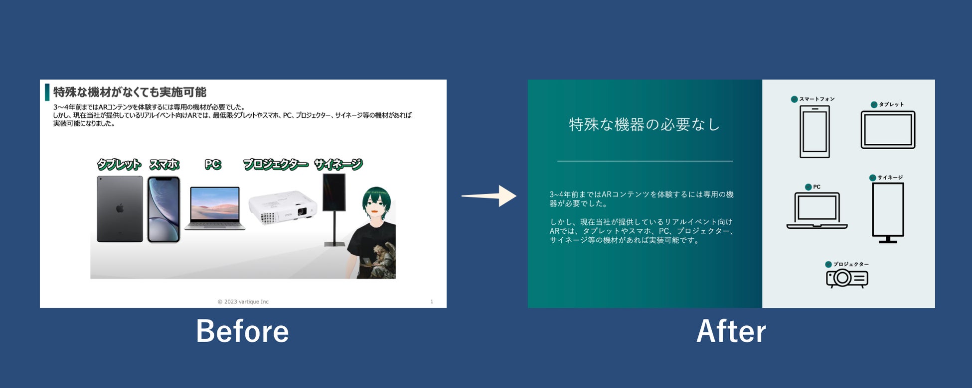 以下は資料リニューアルのBefore→Afterです。