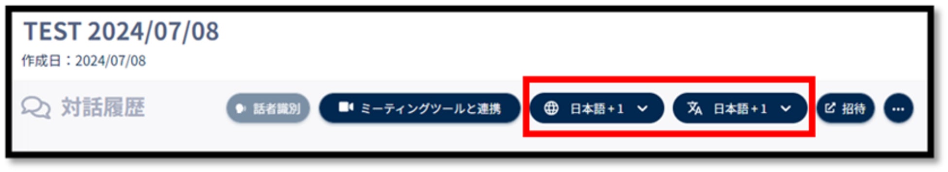 ①新規議事録よりマイクからを選択いただき、議事録を作成いただくと画面上部より発話言語/翻訳言語を指定できます。