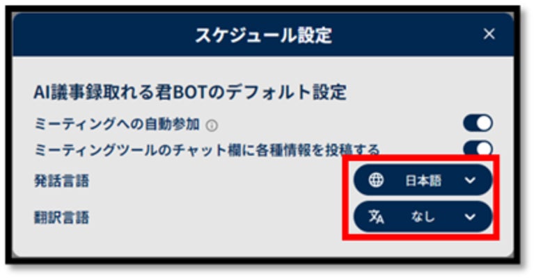 ②スケージュール連携より多言語ミーティングをご利用いただく場合は、スケジュール設定画面より設定が出来ます。