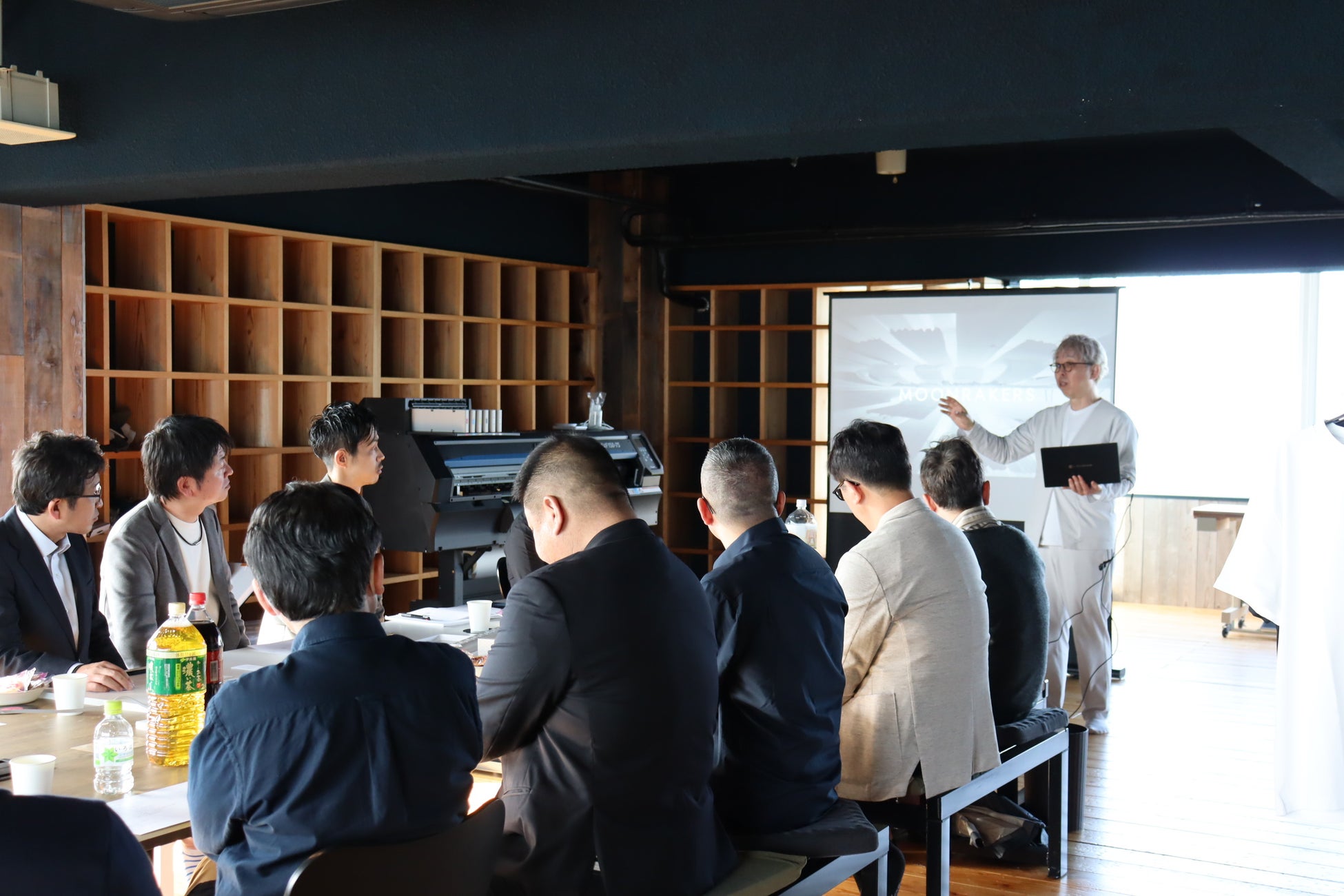 この会には九州各地より構想に賛同する12の縫製工場が参加し、加えてオブザーバーとして次なるクラスター化を目指す四国からも1社の参加が実現しました。