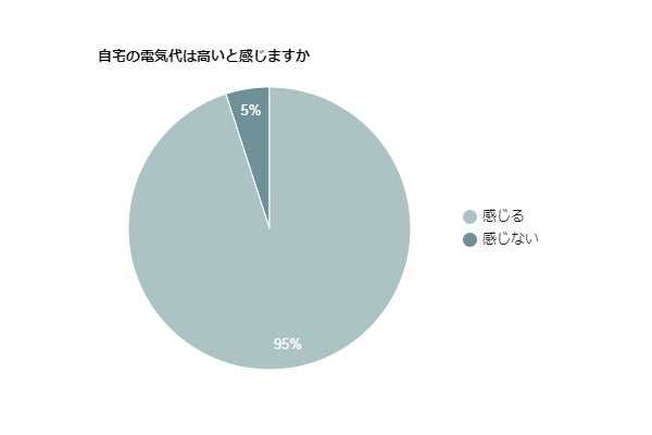 自宅の電気代を高いと感じていますか?という質問に、95%の方が「高い」と感じると回答しました。