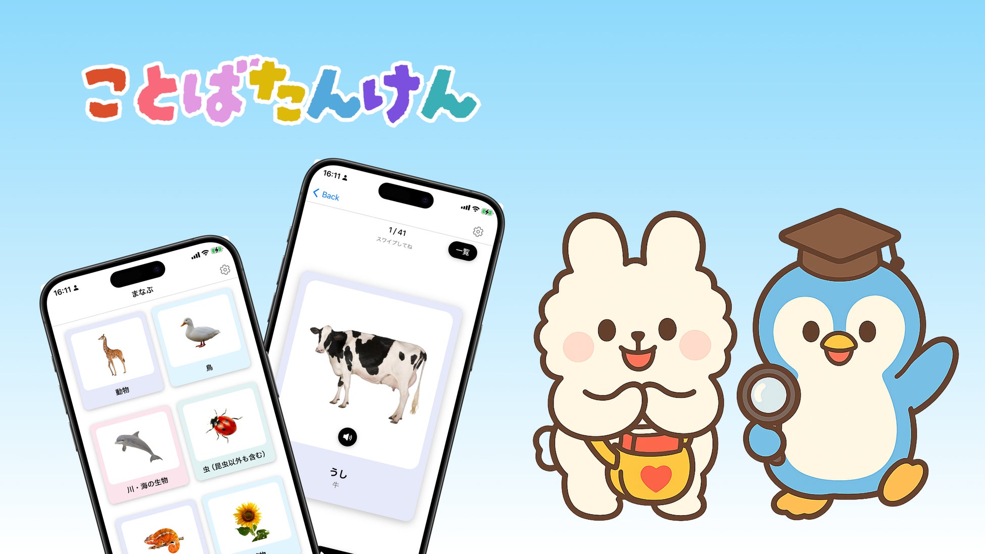 幼児から小学生低学年向けの言葉学習のアプリ『ことばたんけん』には、「ことっぴ」・「ぺんたん」という新キャラクターを追加しました。