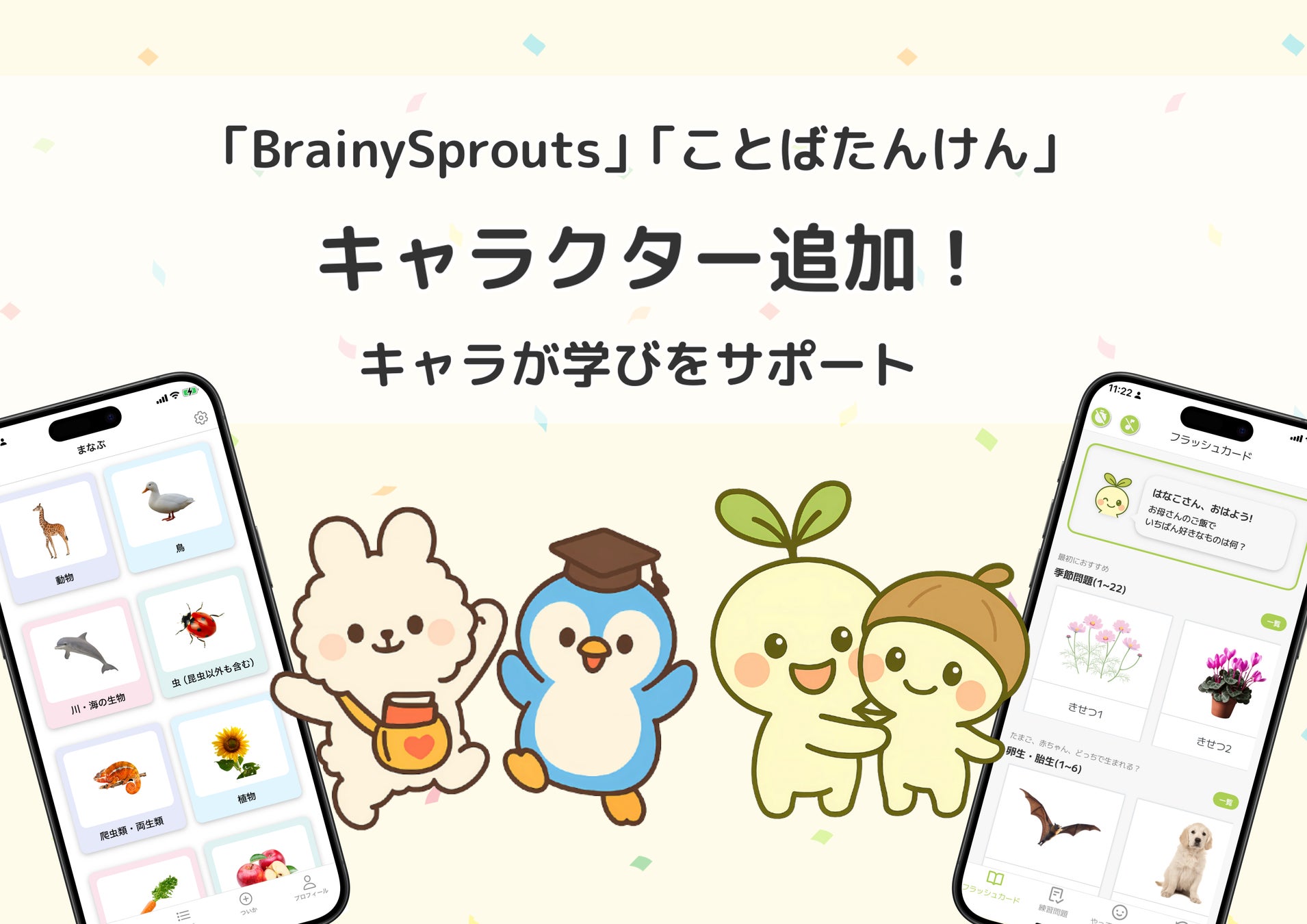 小学校受験対策&幼児向け知育アプリ『BrainySprouts』と幼児向け知育アプリ『ことばたんけん』に学習応援キャラクターが登場!