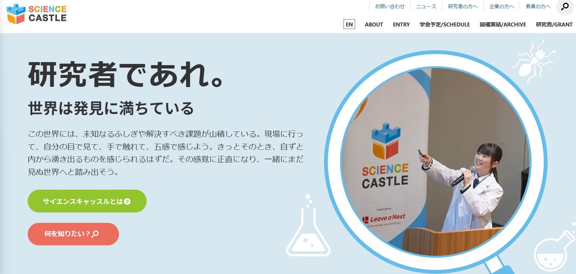 小中学生のための学会「サイエンスキャッスル」では多くの企業のサポートのもと、トコトンチャレンジ2024参加者以外の小中学生が多数、研究報告を行います。このような研究発表の場に興味をお持ちいただけましたら、サイエンスキャッスルの特設サイトもご確認ください。