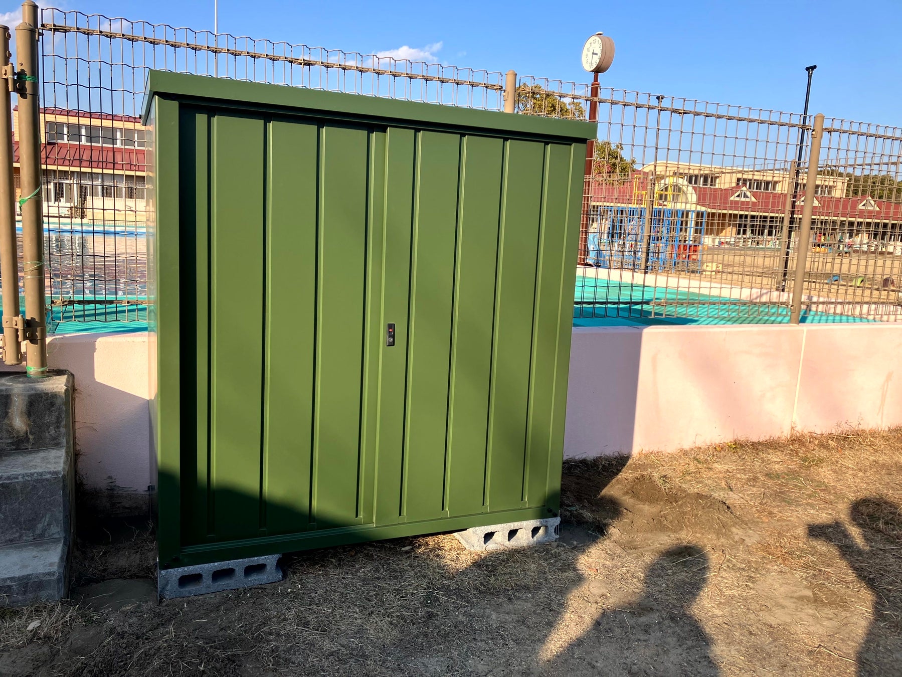 弊社が受注した国土交通省様の工事を御前崎港で行っているご縁で、お世話になっている御前崎市様の地域の避難場所に指定されている「御前崎市立さくらこども園」への寄付活動を行うことになりました。寄付にあたり、園長先生との打ち合わせで、保育園が既に防災グッズを揃えていることを確認しました。その上で、これらを安全に保管するための倉庫の設置が必要であるという要望に応じ、倉庫の寄付を決定しました。防災用品を適切に保管できるよう、基礎工事から設置までを弊社が行いました。