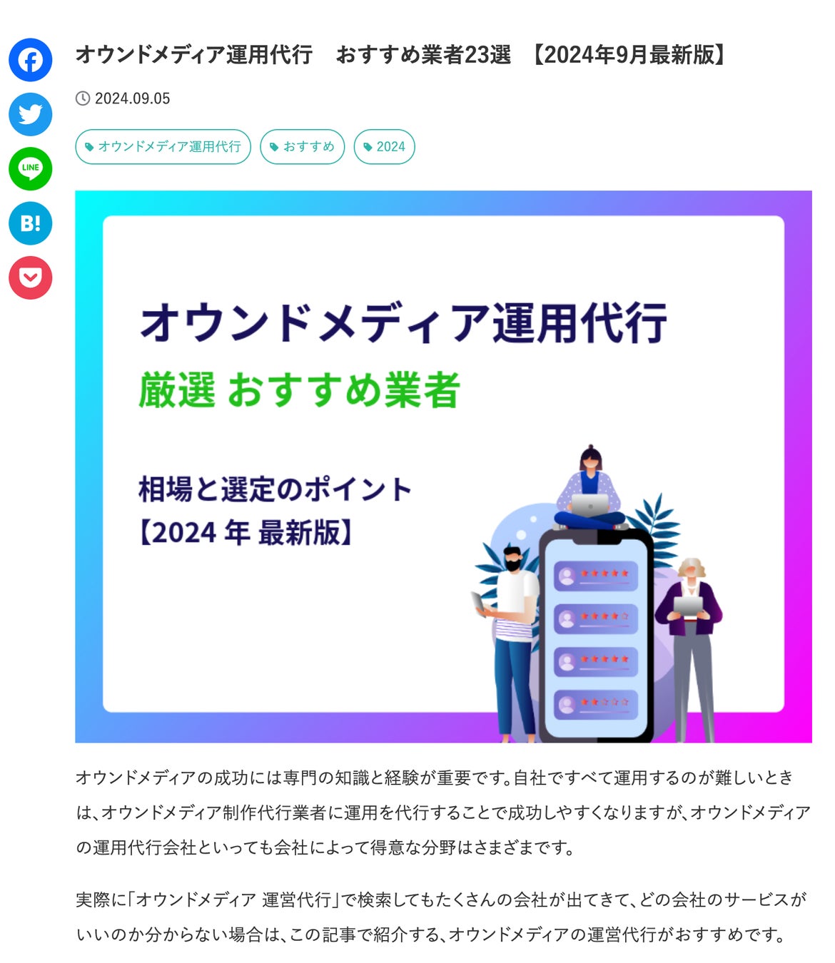 「オウンドメディア運用代行 おすすめ業者22選【2024年9月最新版】」はこちらからご覧いただけます
