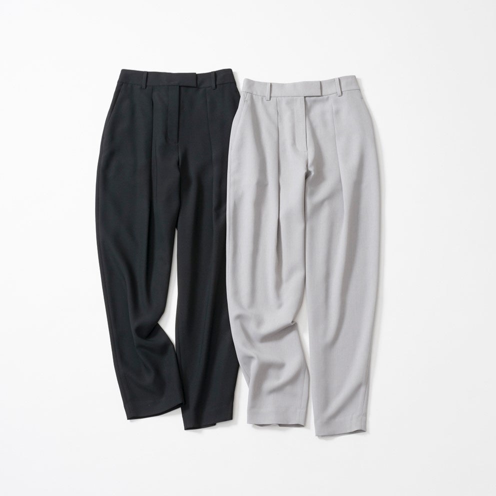 裾にかけて緩やかにカーブしたシルエットが脚のラインをカバーしてくれる、カーブテーパードパンツ。夏にも着やすいサラっとした肌触りでシワにもなりにくく、長めの丈とリラクシーなシルエットがトレンド感のあるアイテムが発売になります。