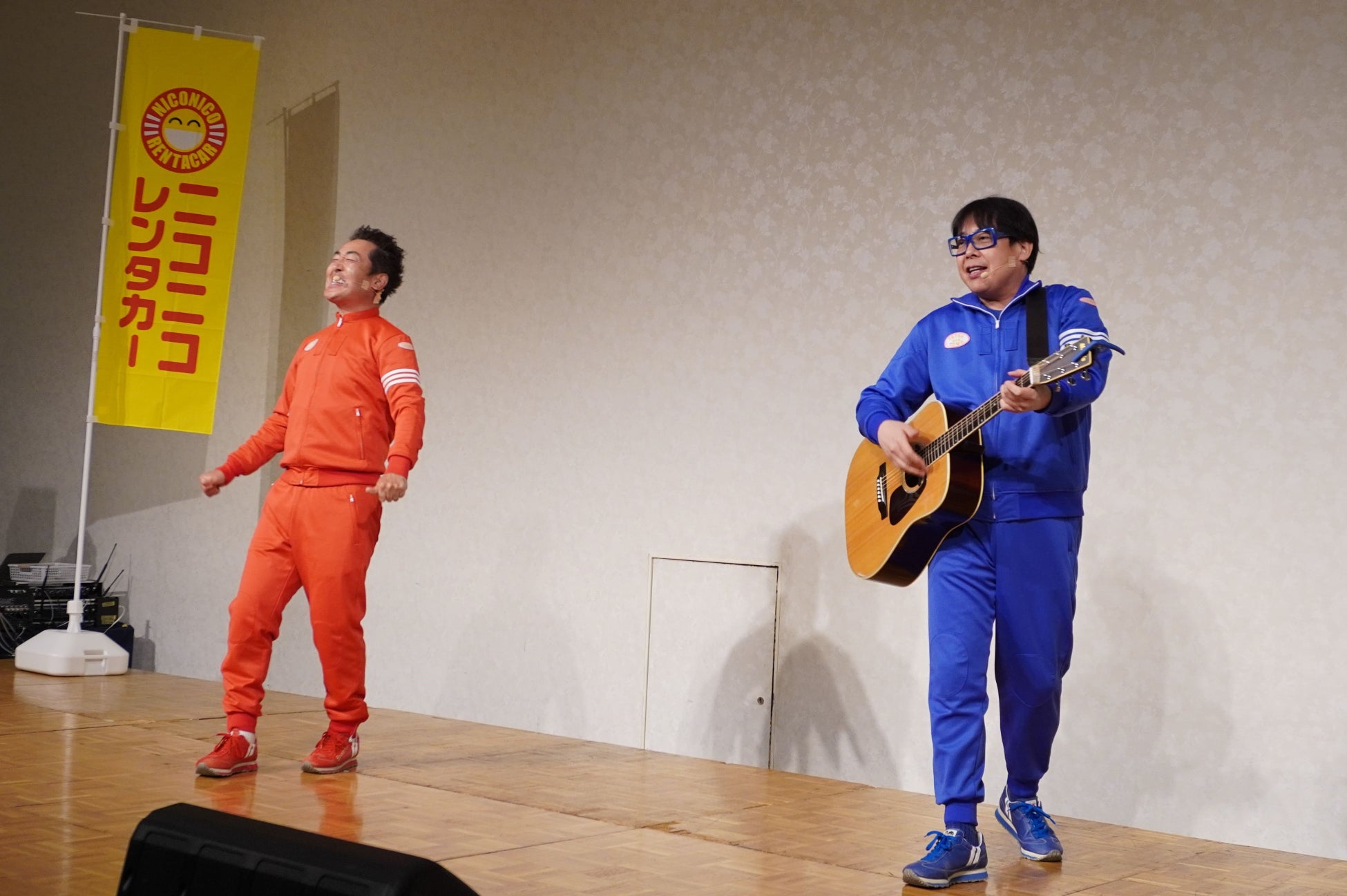 地域・規模の垣根を越えて、加盟店様同士で大いに交流を図りました。ニコレン15周年をお祝いするサプライズゲストとして、お笑いコンビ「テツandトモ」が登場しました。「なんでだろう~♪ニコレンスペシャルバージョン」も交えた、約30分間のステージは圧巻。加盟店様やMIC・ホームネットカーズの若手営業スタッフも巻き込み、笑いの絶えない時間となりました。