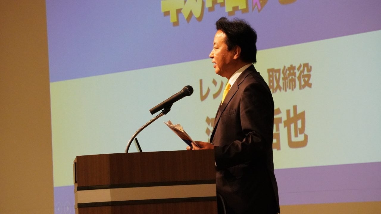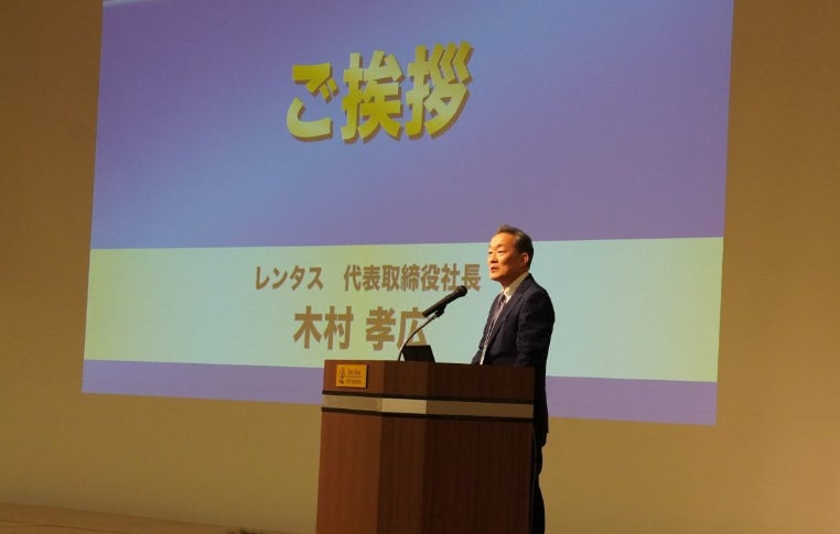 レンタス代表取締役社長の木村孝広よりニコニコレンタカー15年の歩みと現況をお話させていただきました。国内最大の店舗ネットワーク確立、顧客満足度の大幅アップ、車両の高年式化による品質向上。これらを加盟店の皆様のご尽力によって実現できたことに感謝するとともに、FC本部として今後も「量」と「質」の両面からブランド価値を高め、加盟店様がよりビジネスをしやすい環境を作っていくことを宣言しました。