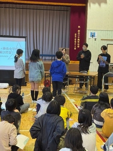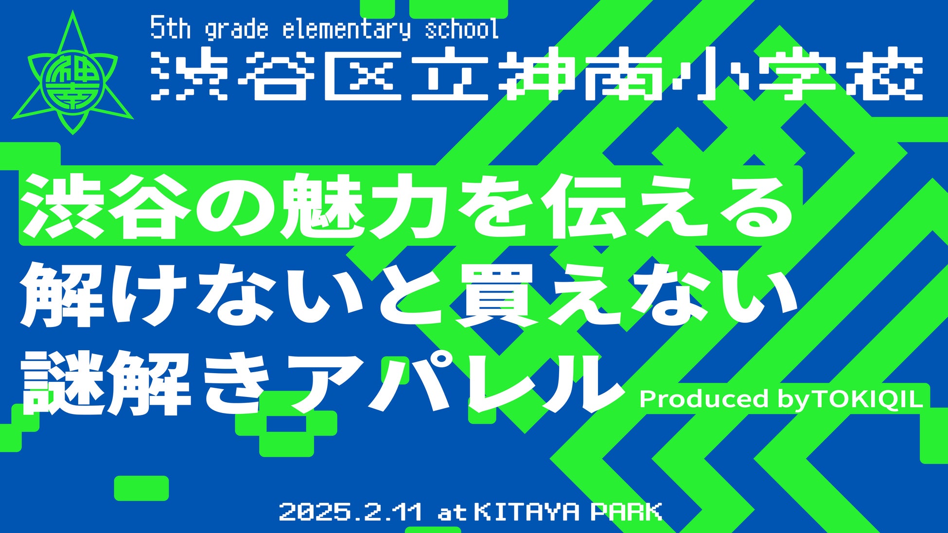 謎解き専門アパレルブランド「トキキル」が渋谷区立神南小学校5年生の総合の授業にて謎解きの授業を行い、小学5年生92名と渋谷の魅力をテーマにした暗号つきの服を共同制作しました。