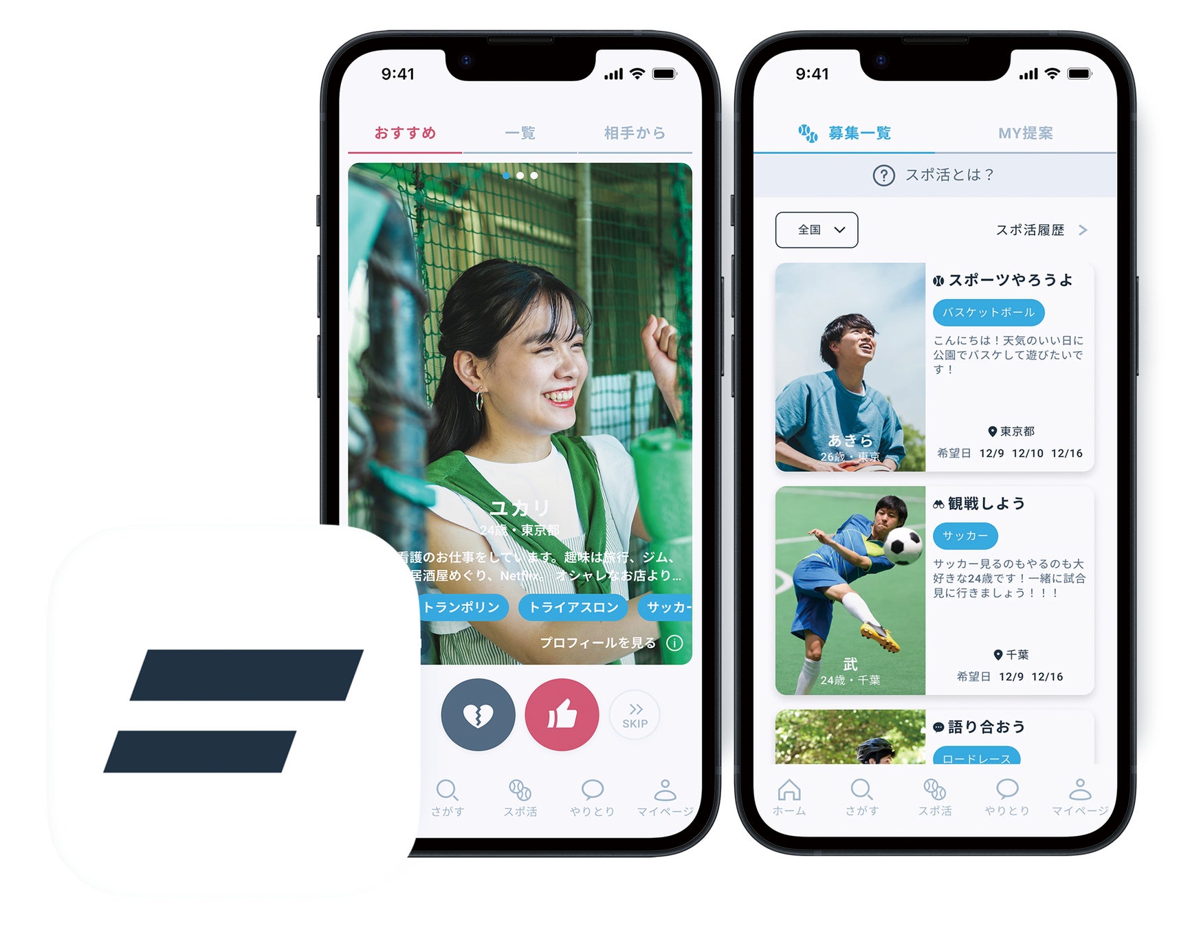 ご自身の得意なスポーツを登録できる「好きなスポーツベスト」機能や、気軽にスポーツデートのお誘いができる「スポ活」機能などを中心として、スポーツ好きな皆さまがご自身の魅力をアピールしやすい出会いの場をご用意しております。
