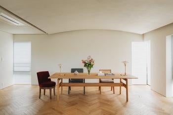 日本を旅するなかで親しみを感じた「縁側」のような空間が欲しいという要望から、窓からの光、テラスへの繋がりを最大限に生かし、自然体でいられる住環境を計画した。内装材はシンプルに、自然光と照明計画によって空間の広がりを持たせている。ランドスケープのように、ゆるやかな繋がりを描ける空間を生み出した。