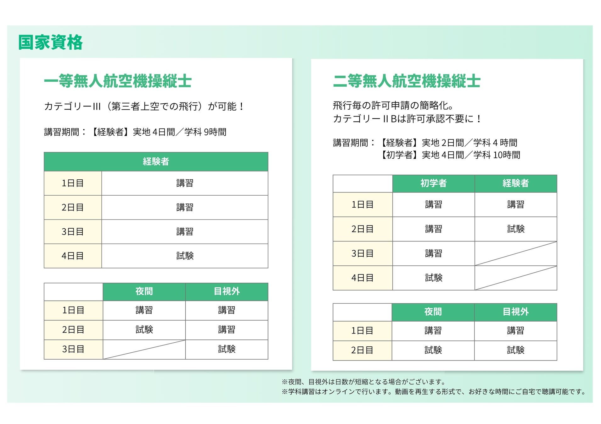 └ 初学者/経験者(夜間・目視外)