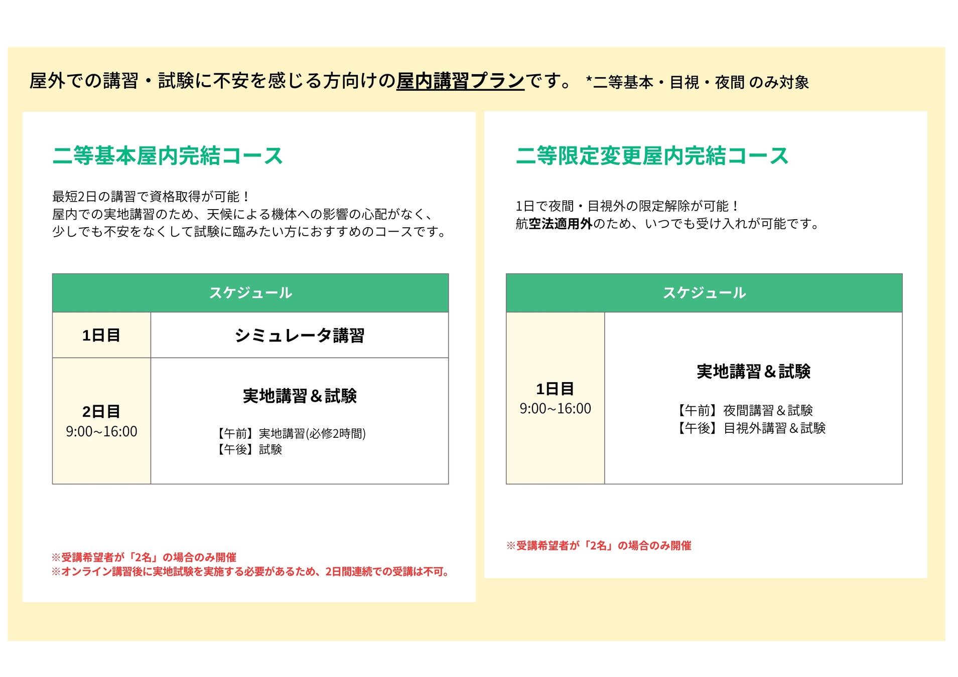 ・最短2日間で国家資格(二等)取得が可能