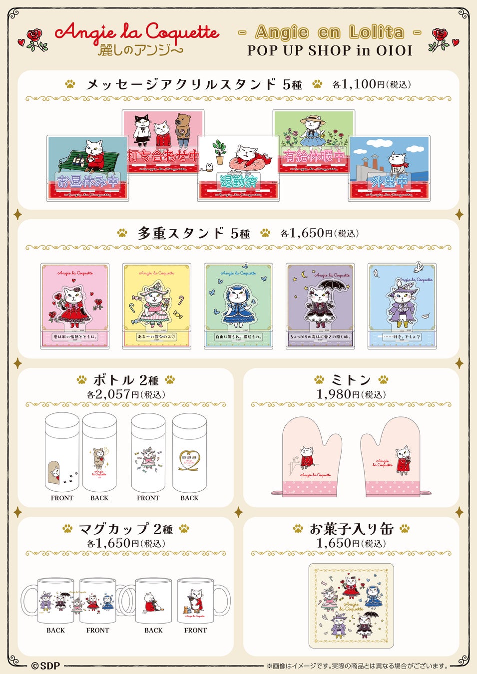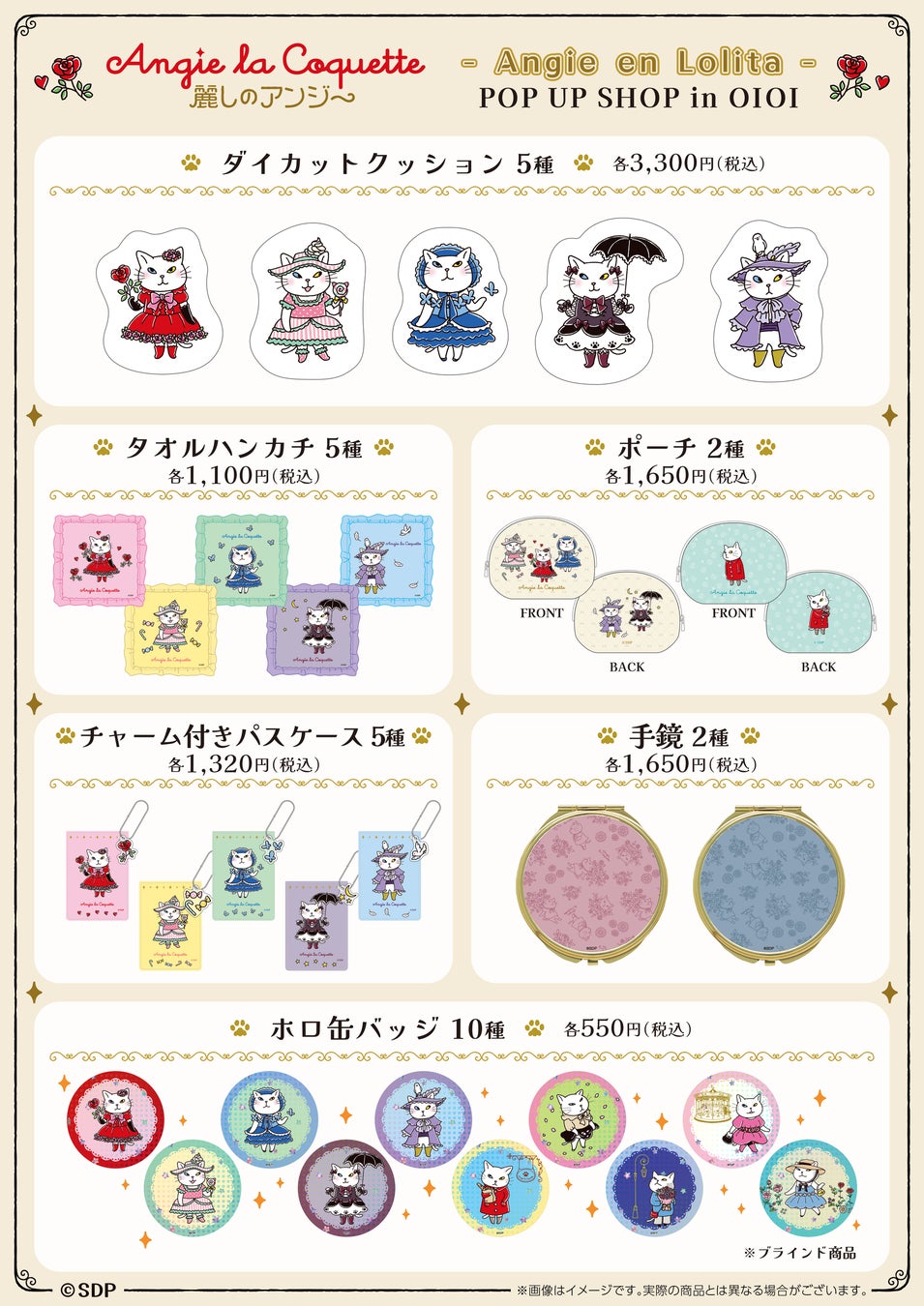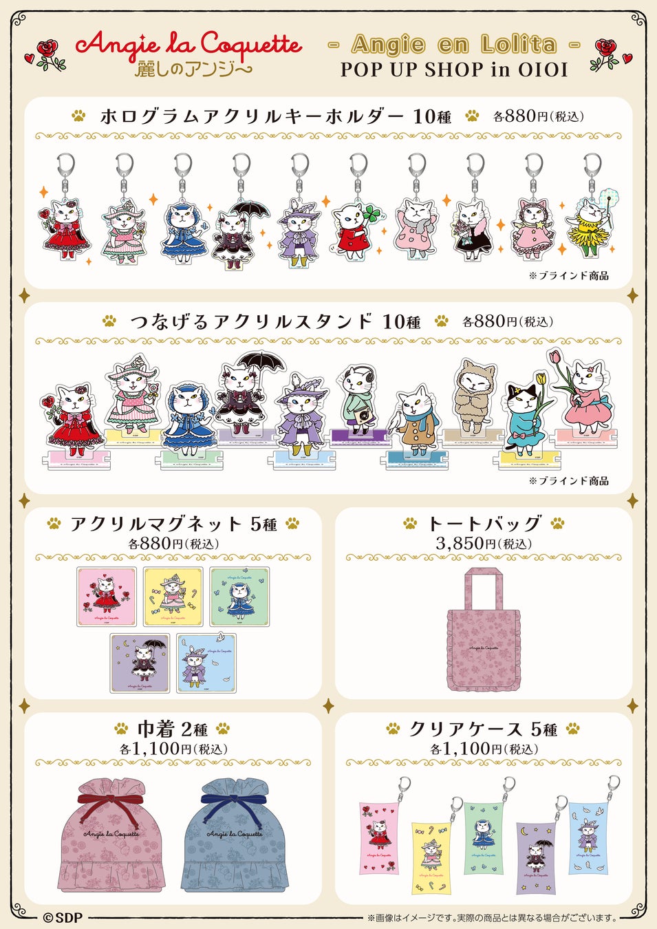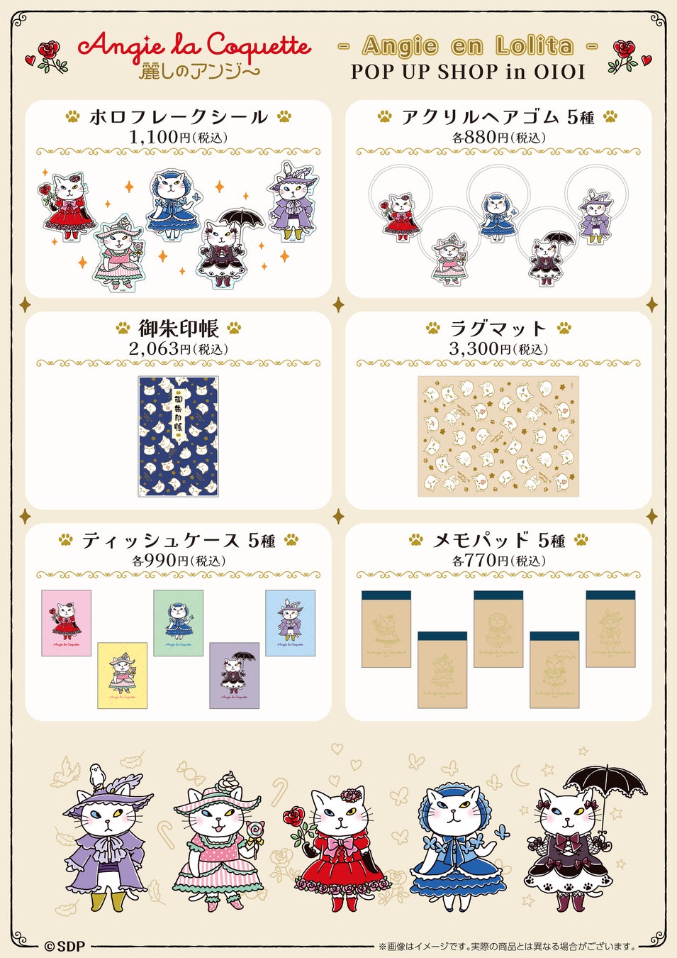 「アンジー×ロリィタファッション」をテーマにした新規描き下ろしイラストを使用したグッズをはじめ、クッション、トートバッグ、お菓子入り缶、ご朱印帳などの多数新規グッズを発売予定です。
