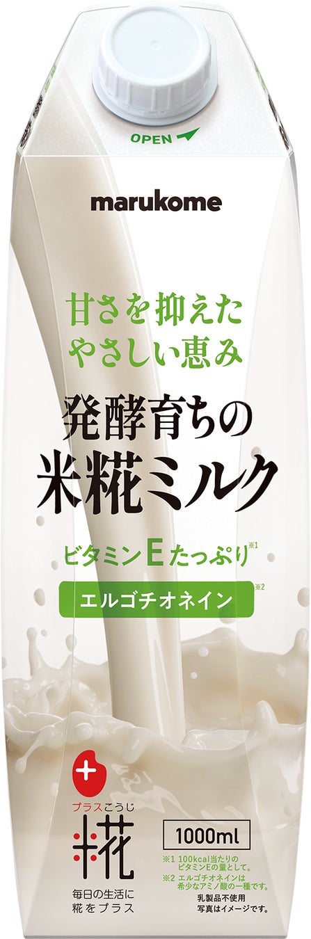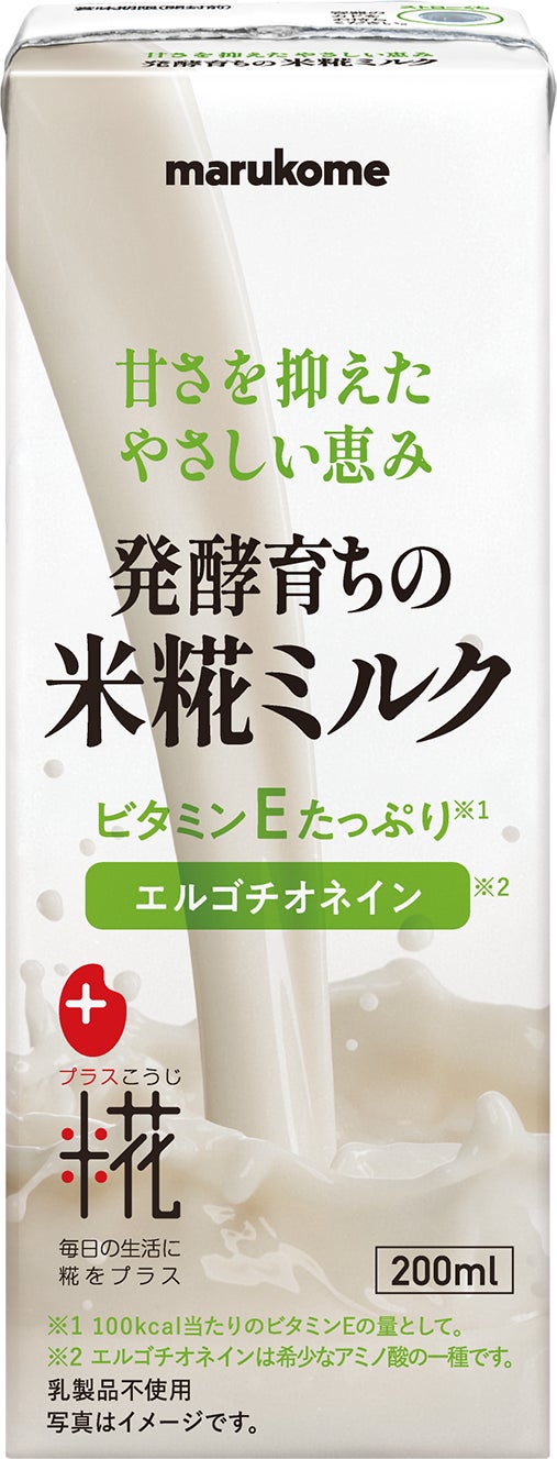「プラス糀 米糀ミルク」は乳成分や大豆といったアレルゲン(特定原材料等28品目)を含まず、乳糖不耐の方も安心して飲むことができる植物性ミルクです。成分には、米由来のビタミンEと糀由来のエルゴチオネイン(希少アミノ酸の一種)が含まれ、いずれも抗酸化作用で注目されています。当社の発酵技術で、おいしさと栄養価にこだわった植物性ミルクに仕上げました。