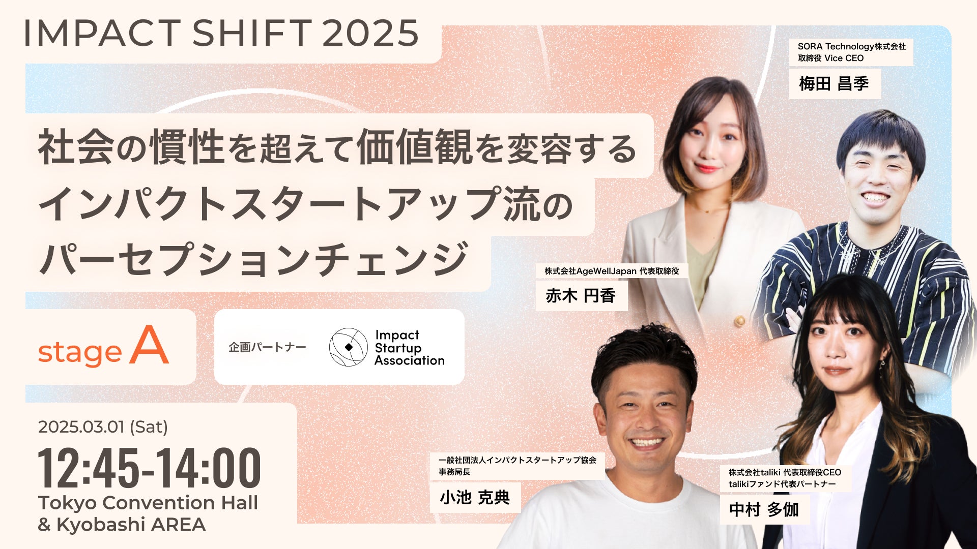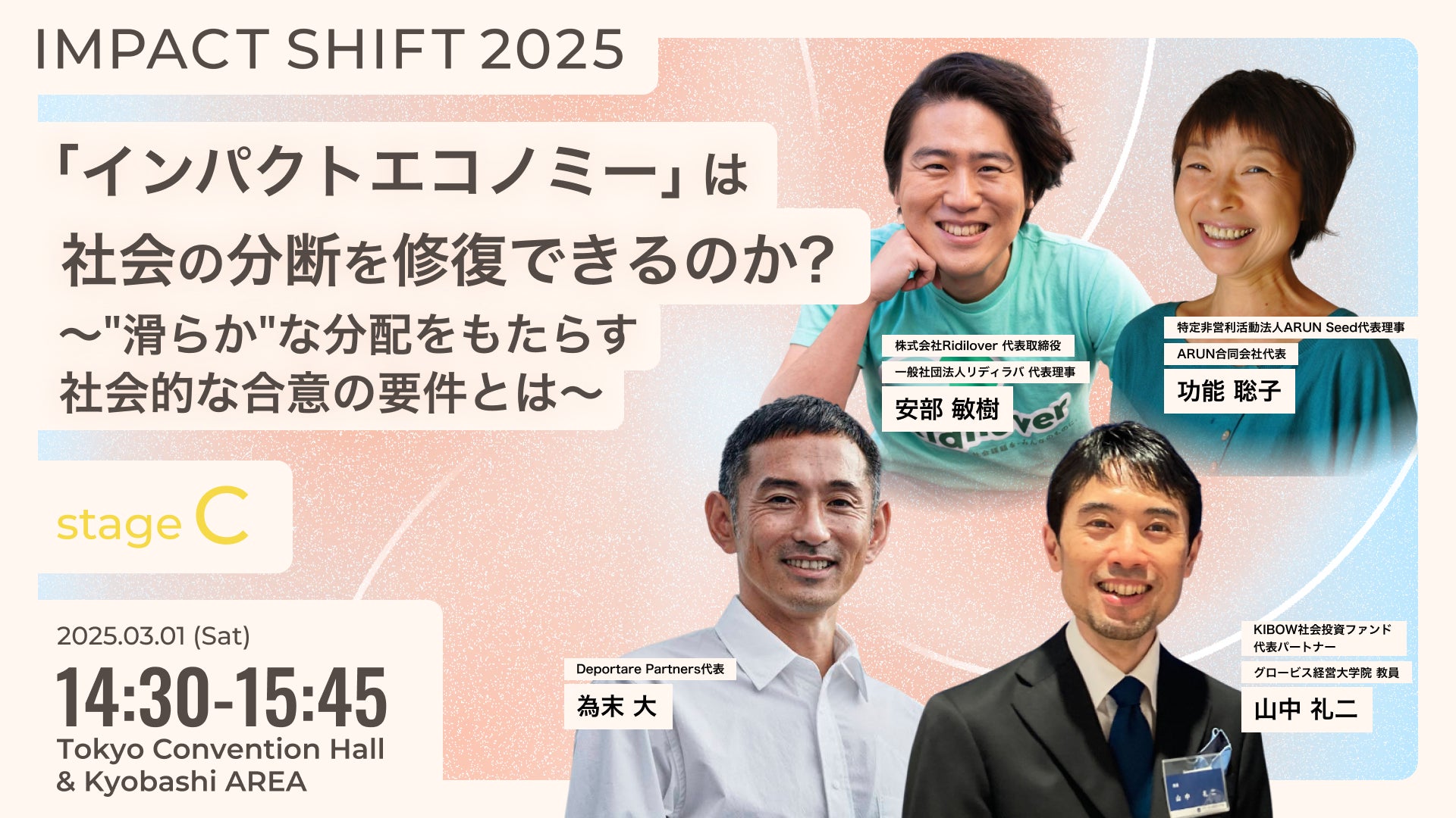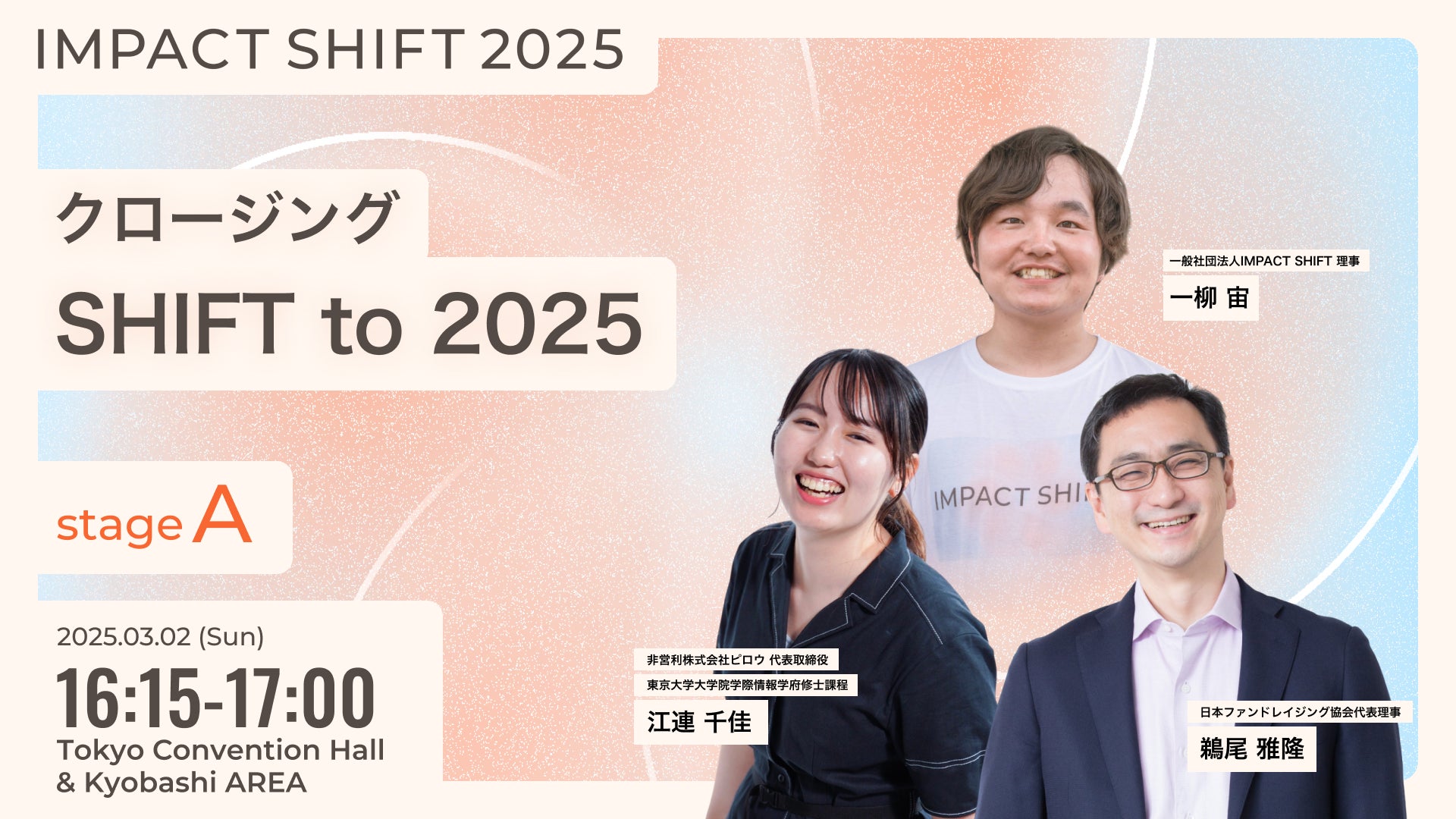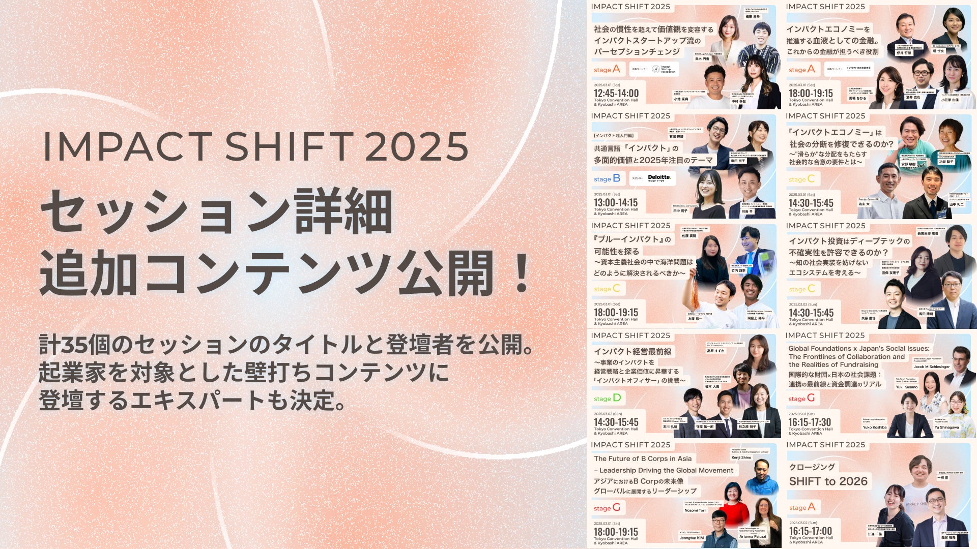 一般社団法人IMPACT SHIFT(本社:東京都日本橋、代表理事:河合将樹、以下IMPACT SHIFT)は、社会課題に向き合う全ての人に向けた「IMPACT SHIFT 2025」を2025年3月1日(土)・3月2日(日)東京にて開催いたします。