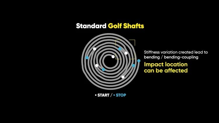 手作業であることに加え、「軸ずれ」と「スパイン」はシャフトに意図しない挙動を与えます。トッププロが同じスペックのシャフトを何本か打ち比べ、最もフィットするシャフトを選んで使うことはよく知られています。表示上は同じスペックでも、トッププロはシャフトの個体差がはっきり分かるのです。