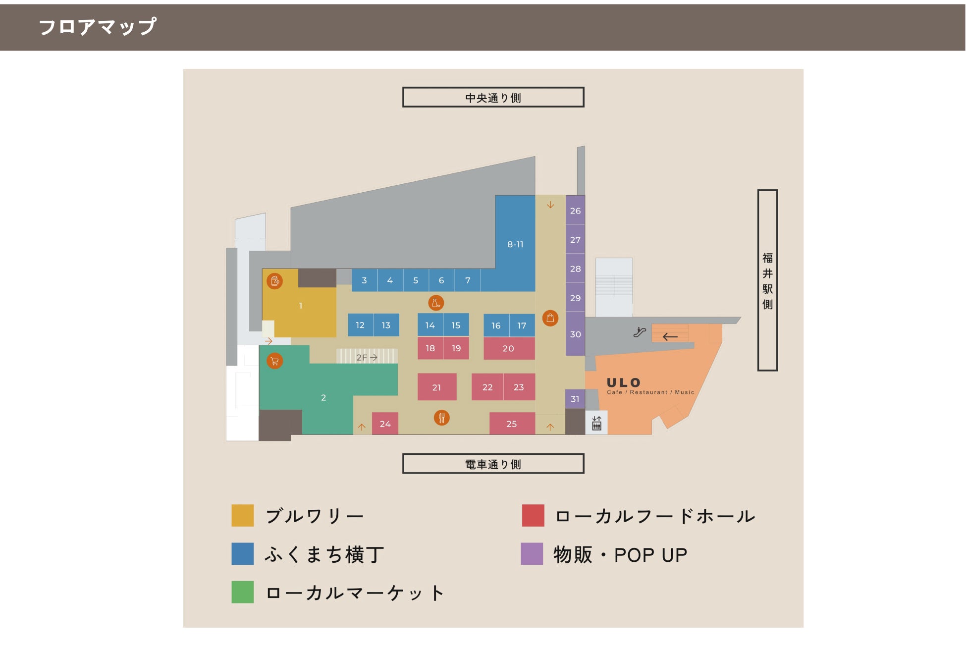 施設概要 施設名称:福井駅前フードホール M I N I E(ミニエ) 所在地:福井県福井市中央1-3-5 FUKUMACHI BLOCK 1F・2F MINIE 施設床面積:2,185.42 ㎡(32区画) |
