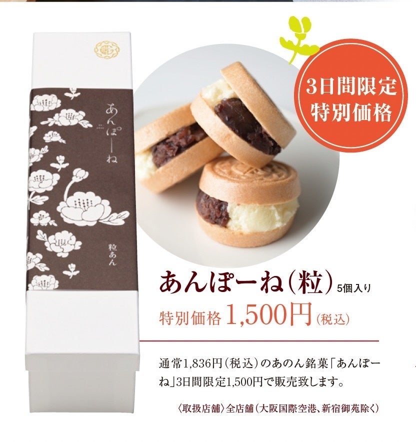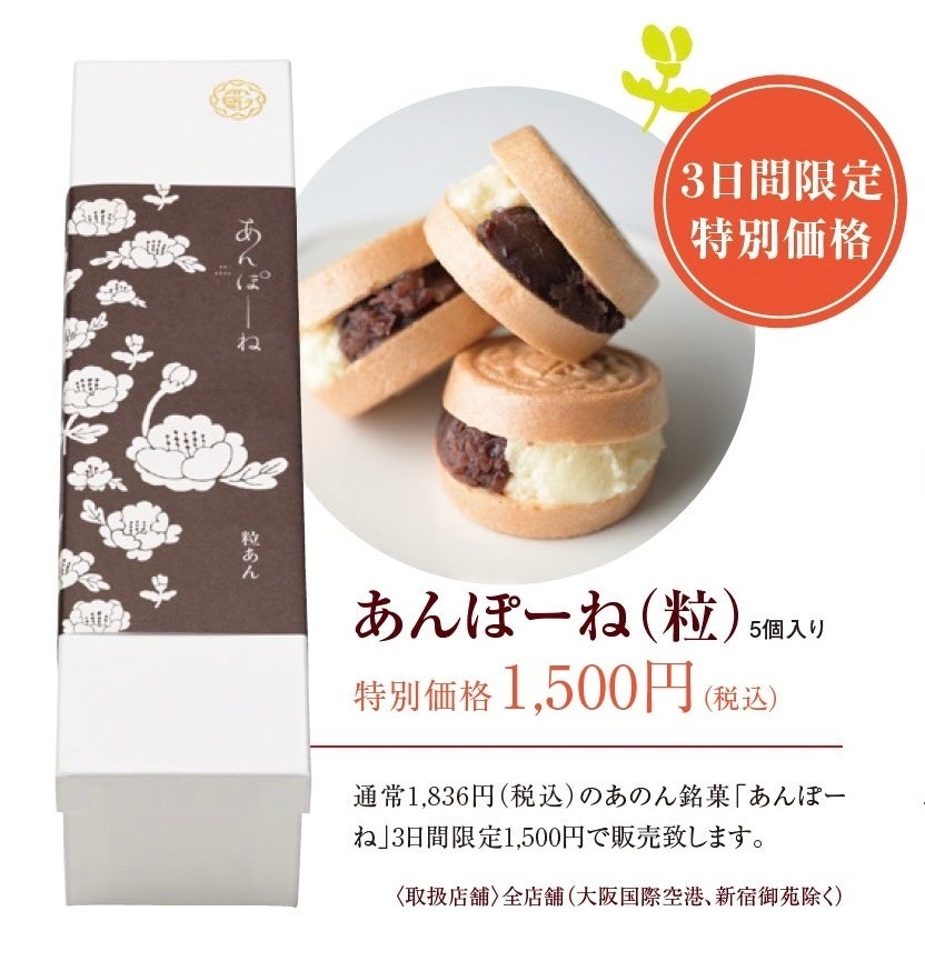 京都祇園あのんの看板商品「あんぽーね(粒)5個入り」を