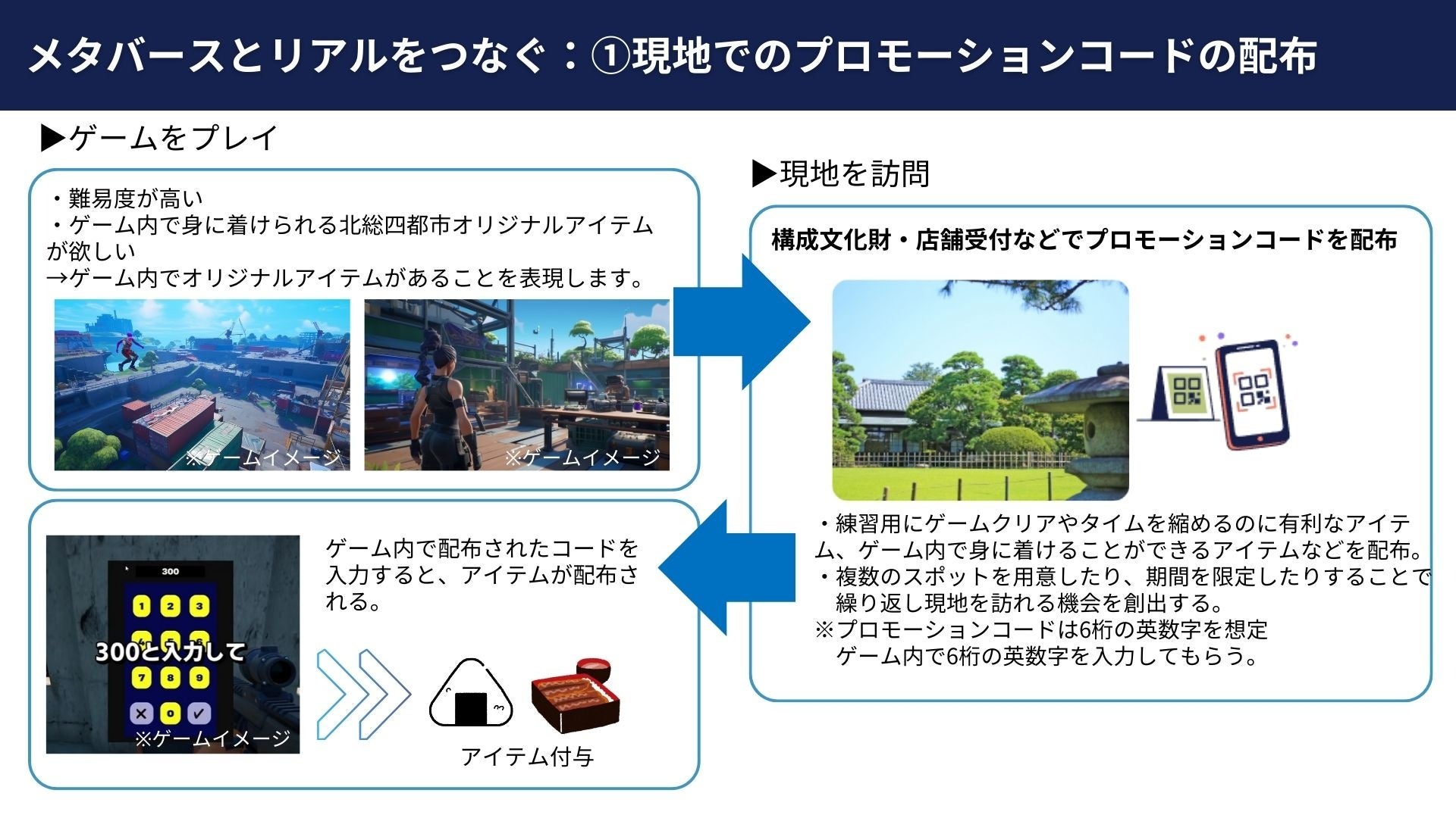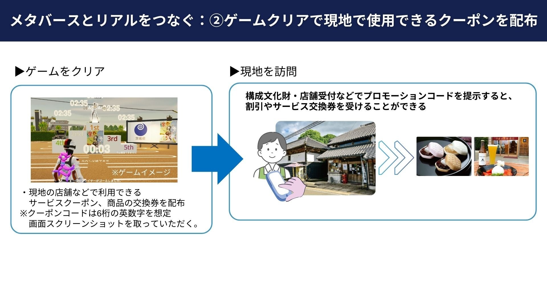 メタバースでの体験を、実際の観光へと繋げるための独自の仕組みを導入します。