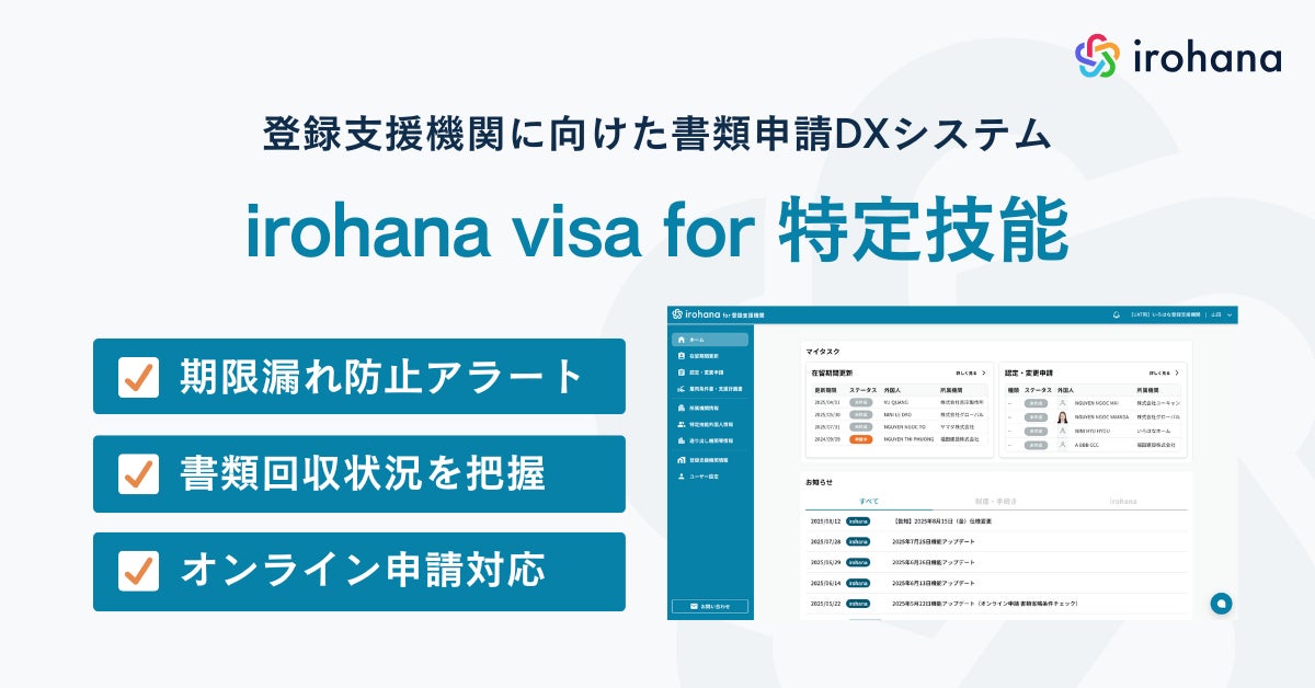 みとうメディカル株式会社、登録支援機関向け書類申請DXシステム「irohana visa for 特定技能」を導入