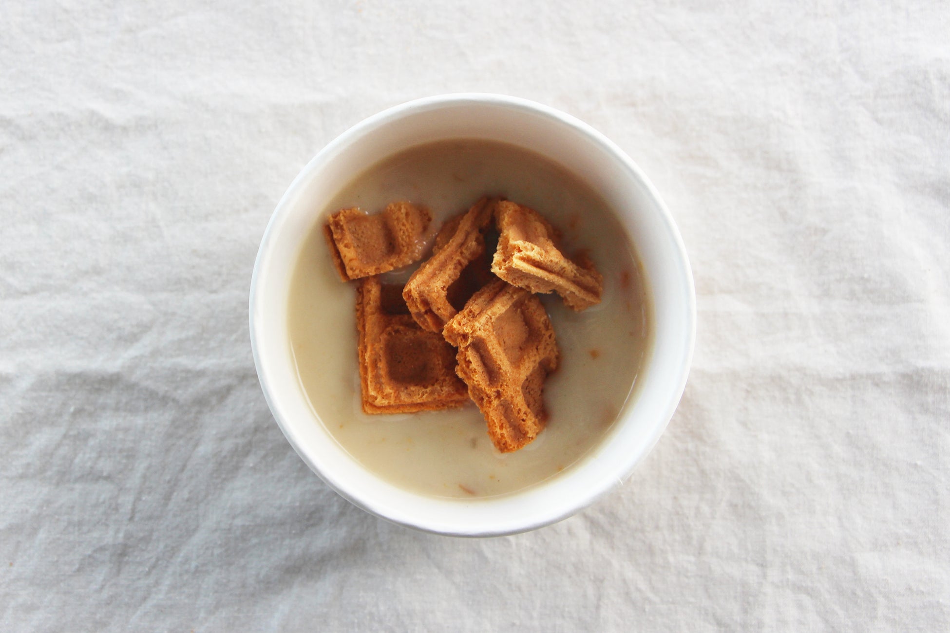 トッピングはクルトンをイメージした、櫟 kunugiオリジナル焼き菓子のさくさくワッフルを使用。