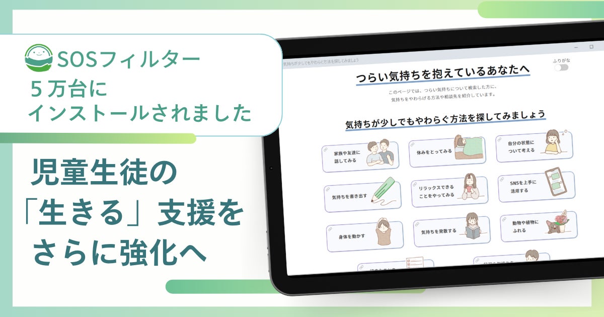 「SOSフィルター」が5万台にインストールされました。児童生徒の自殺対策を目的とした、1人1台端末向けブラウザ拡張機能