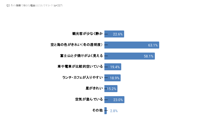 観光のオフシーズンという印象とは裏腹に、実際に暮らす人々にとっては、冬の湘南がポジティブに受け止められていることが分かります。