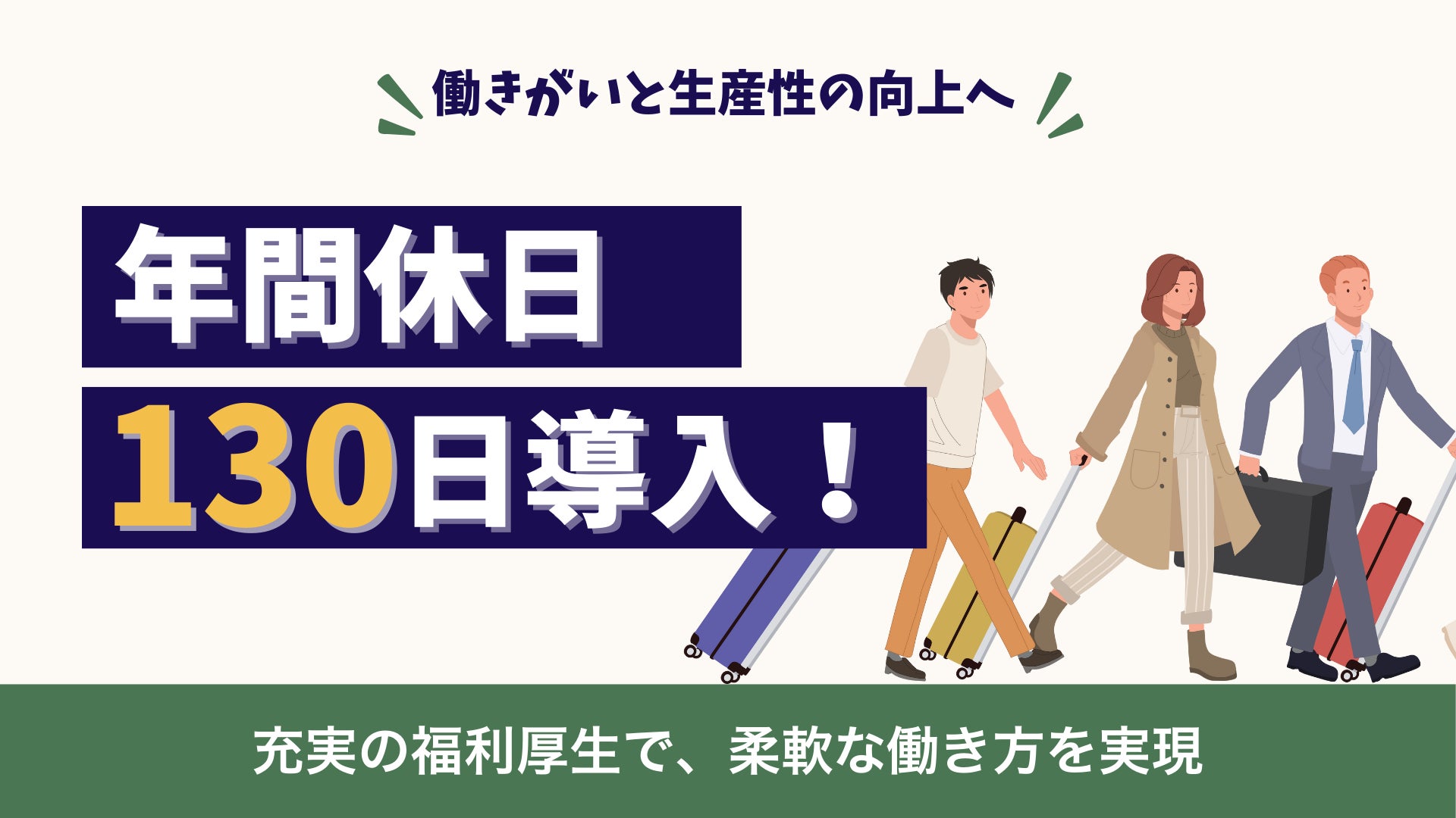 「休みが増えると、成果も上がる」年間休日130日導入で、働き方改革を推進!