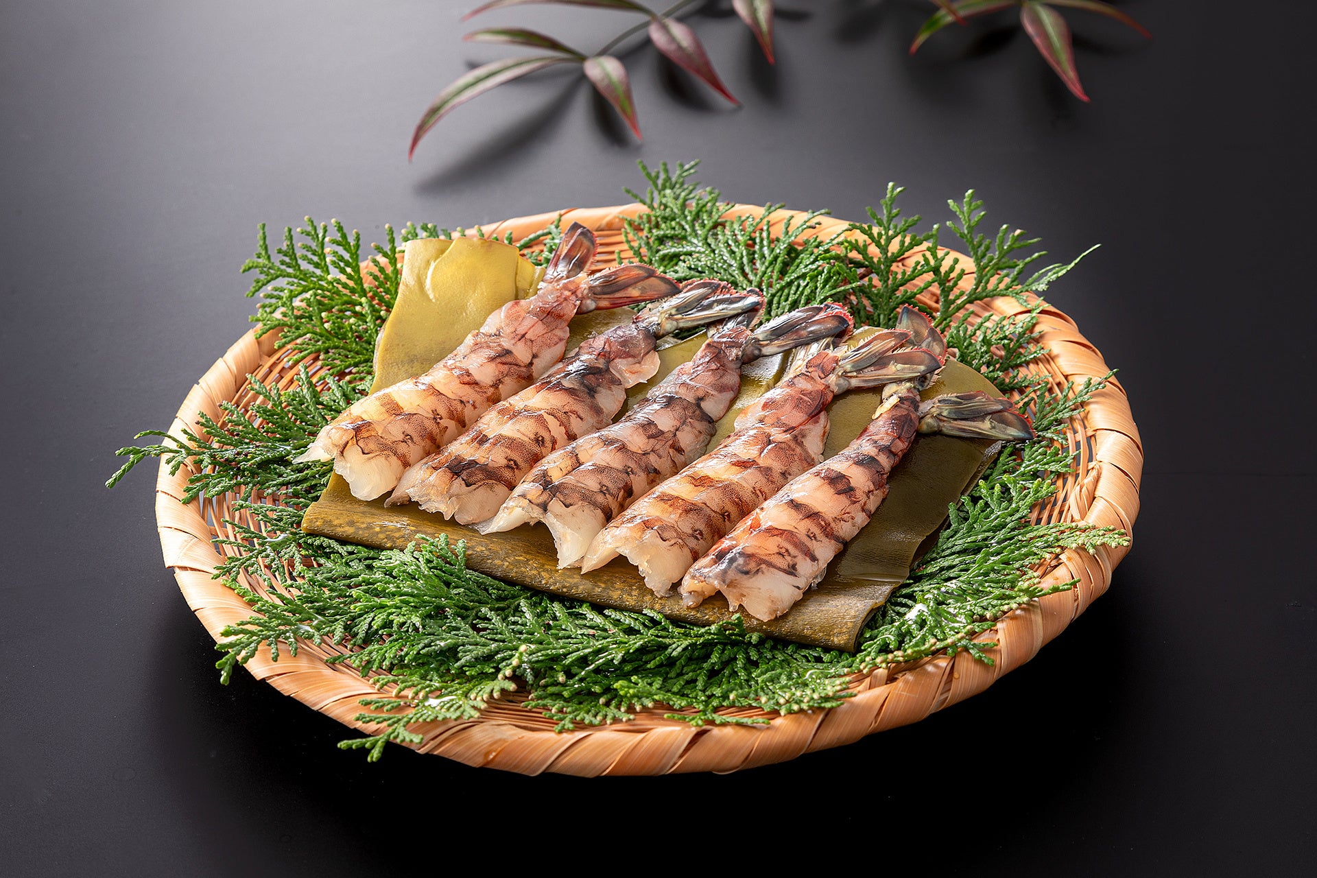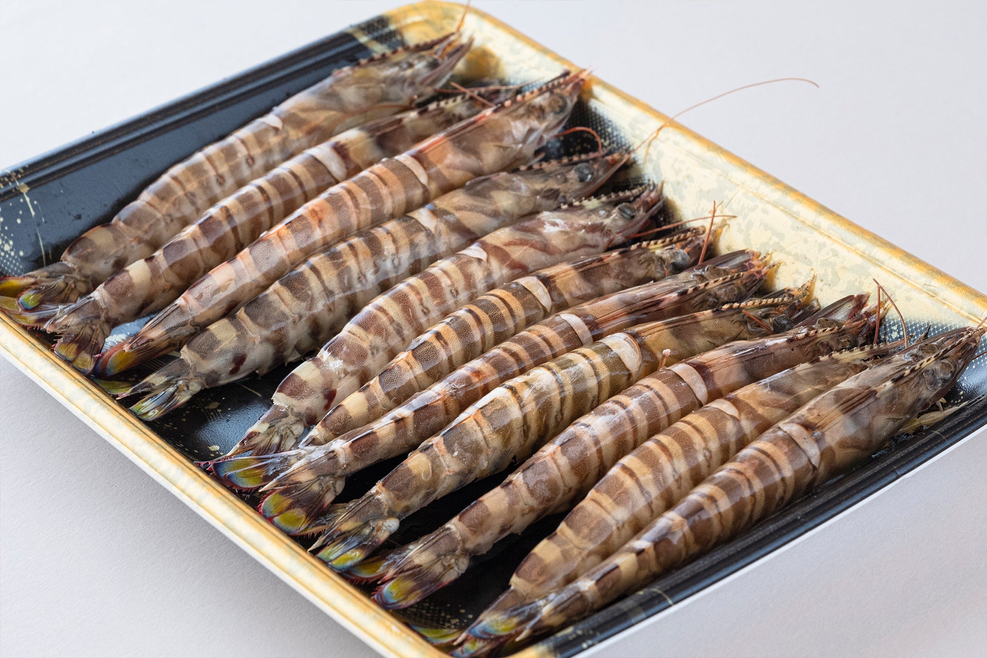 特産の上関車海老を鮮度を保ったまま急速冷凍。自然解凍させたお刺身は絶品です。