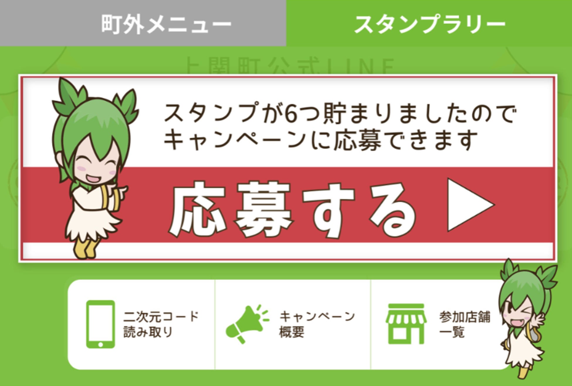 スタンプが6つ貯まると、応募フォームが選択できます。