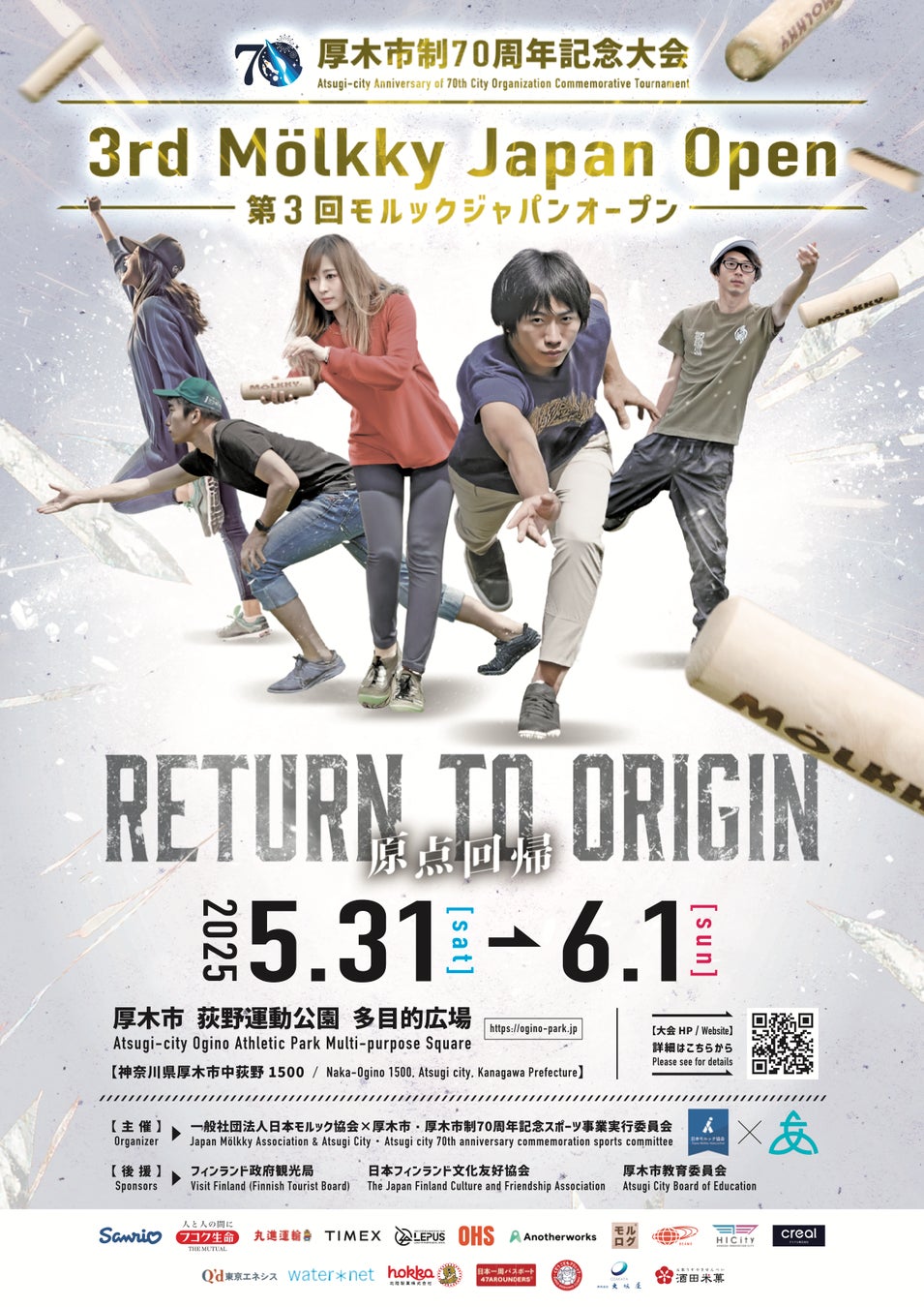 第3回モルックジャパンオープン<厚木市制70周年記念事業>(主催:一般社団法人日本モルック協会、厚木市・厚木市制70周年記念スポーツ事業実行委員会)を、2025年5月31日(土)から6月1日(日)に厚木市 荻野運動公園 多目的広場(神奈川県厚木市)で開催します。