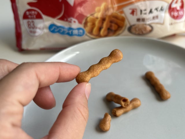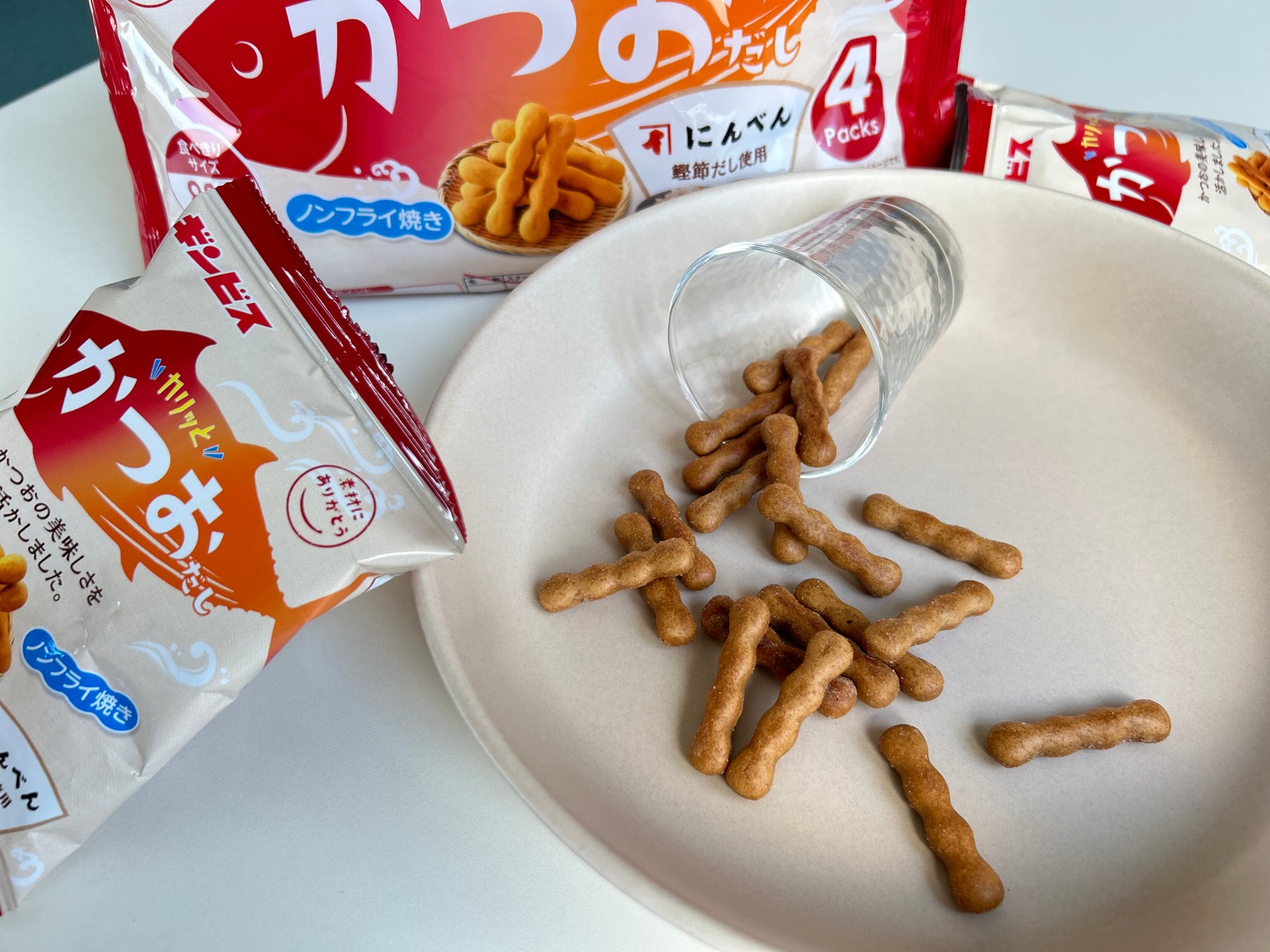 開発の過程では、焼き上げる際に生地を膨らませ「カリッ」とした食感になるように生地とかつおだしの配合に注力しました。また「にんべん」の鰹節だしの味わいをスナック菓子で最大限表現できるよう原料を生地に練り込み、鰹節だしの味わいが最初から最後までしっかりと感じられるように開発をしました。スナック菓子に「かつおだし」を使うというのは初の試みであったため、社内の反応がどうなるのか試食するまで分かりませんでしたが、とても好評で商品化が決定しました。