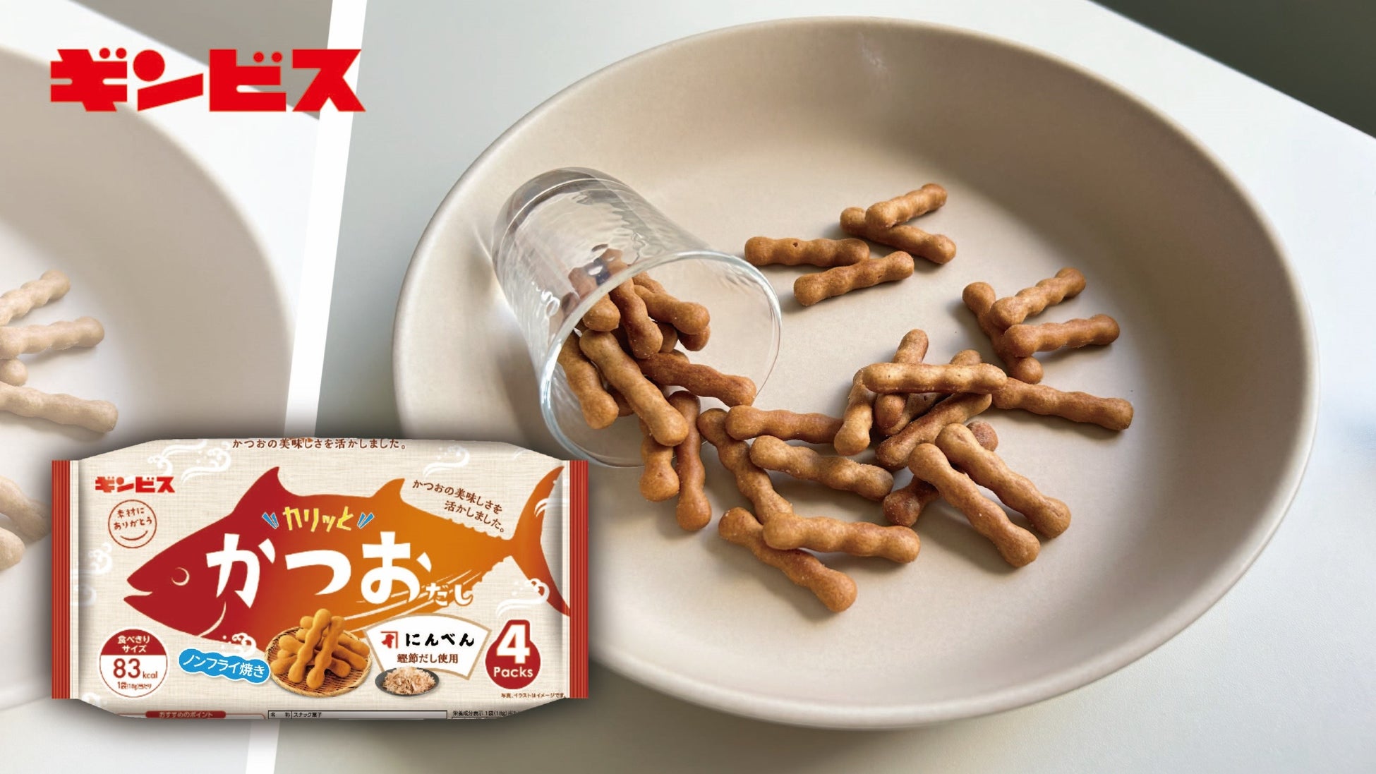 ギンビス初!鰹節だしの本格的な美味しさを味わえるノンフライスナック「にんべん」×「ギンビス」コラボ商品「カリッとかつおだし」を9月9日発売
