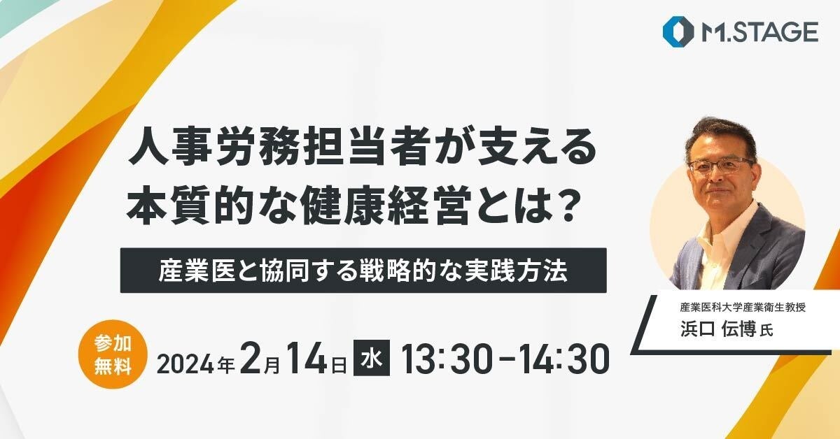 【人事労務担当者が支える本質的な健康経営とは?】産業医と協同する戦略的な実践方法 2/14(水)13:30~無料ウェビナー