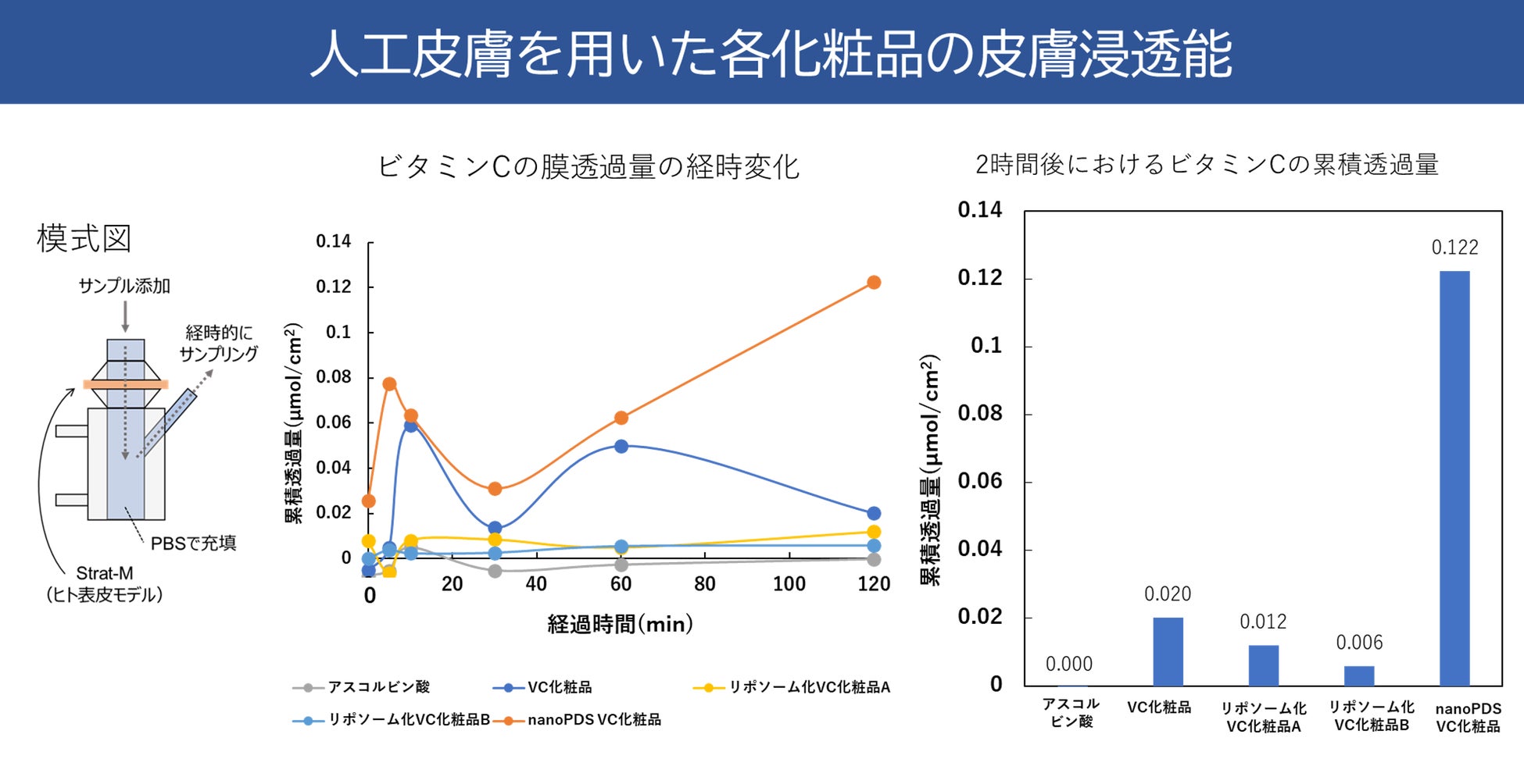 リポソームの10倍以上の浸透性。nanoPDS化ビタミンC美容液、臨床試験で実証