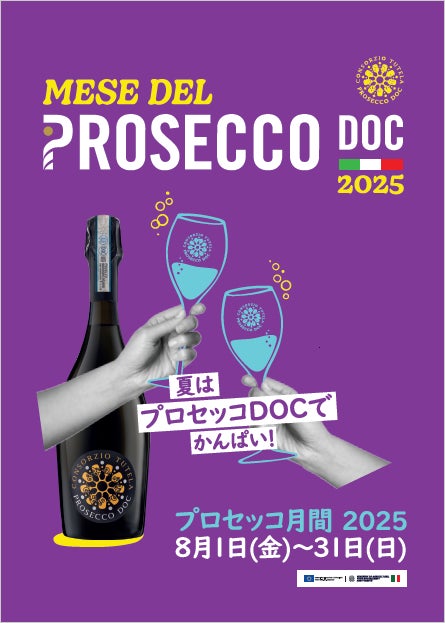 イタリア・トレヴィーゾ市に本部を置くプロセッコDOC保護協会は、今年2025年も日本において夏の恒例プロモーション「プロセッコ月間」を開催いたします。期間は8月1日(金)から31日(日)までの1か月間、全国265店舗(飲食店234・小売店31)にて展開。スローガンは「夏はプロセッコDOCでかんぱい!」です。