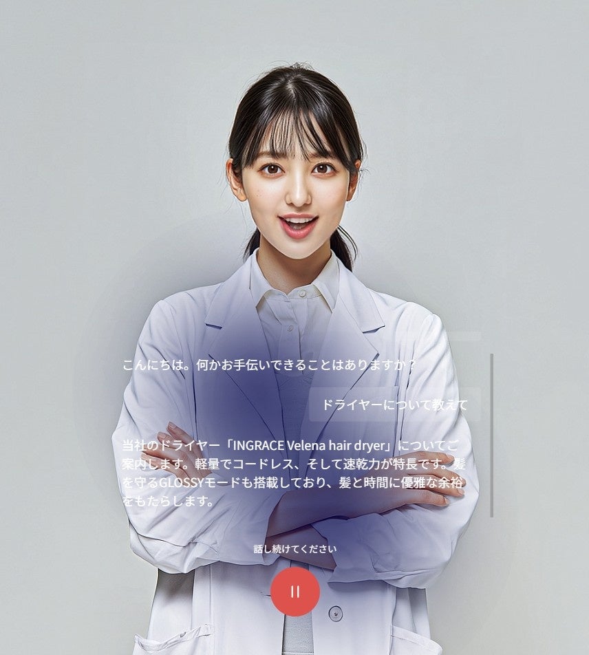 AIアバターが製品の特長を会話形式でリアルタイムに紹介。顧客ニーズを引き出し、深い理解と購買意欲を促進します。