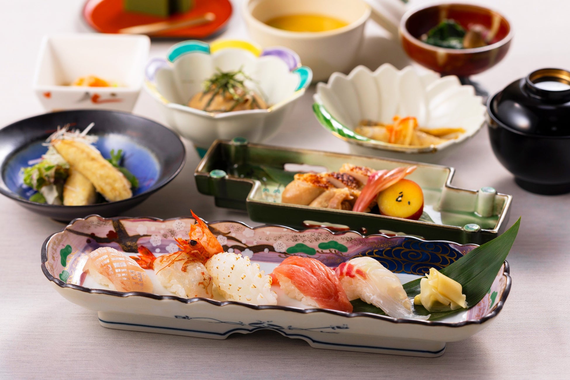 ※「季節のおまかせ寿司会席 ~神楽~」と「お子様御膳」は2日前の午前中までに要予約。