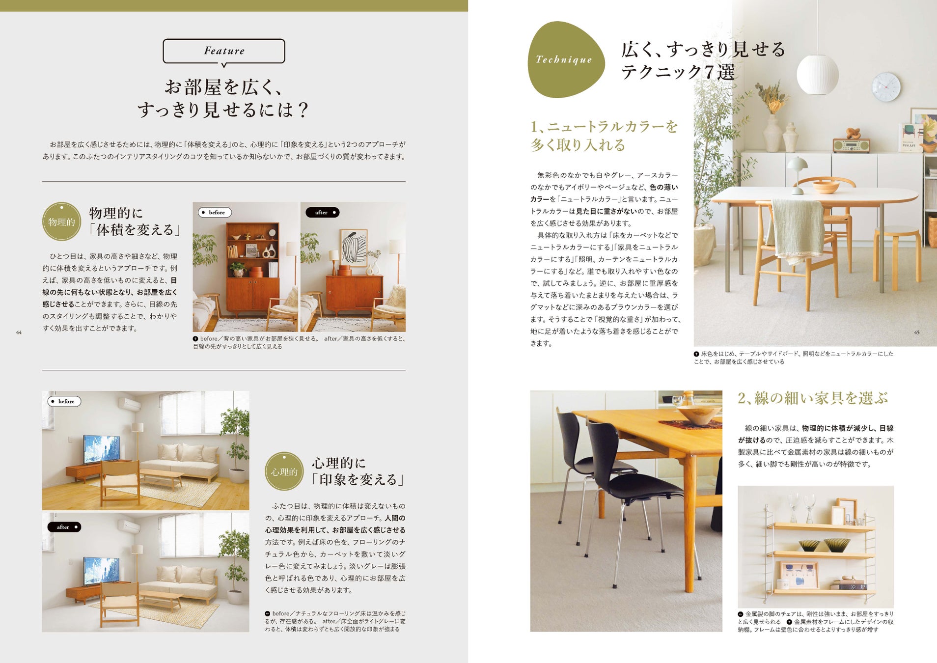 本書は「ふつうのお家を、美しく。」のタイトルの通り、賃貸や一軒家など、ごくふつうのお家であっても、驚くほどにおしゃれで美しく、日々を快適に過ごせるようになる「お部屋づくりの基本セオリー」を、豊富な写真や実例とともに丁寧に紐解きます。