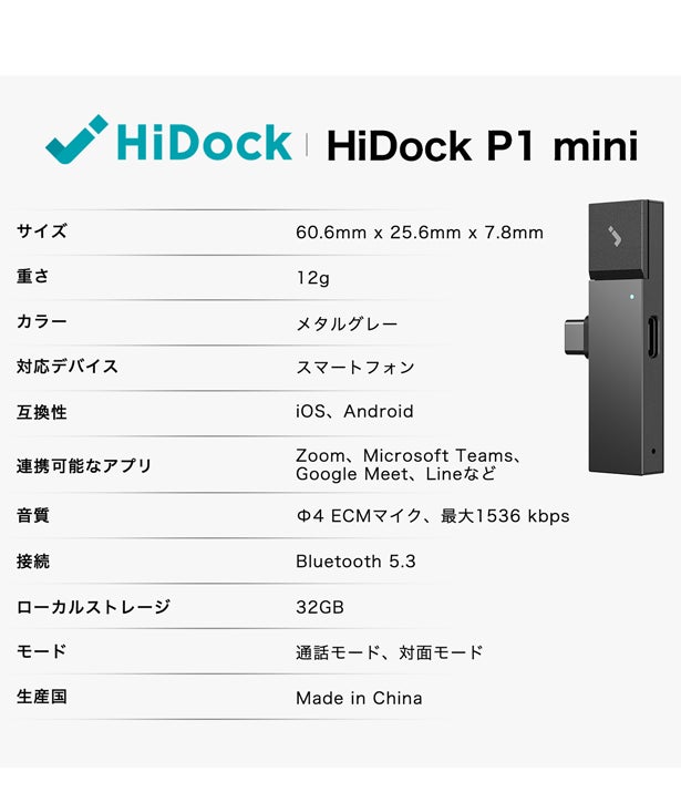 ChatGPT連携で要約も!ワイヤレスイヤホンをつけたまま録音できるAIボイスレコーダー「HiDock(ハイドック)P1 & P1 mini」がMakuakeにて登場!