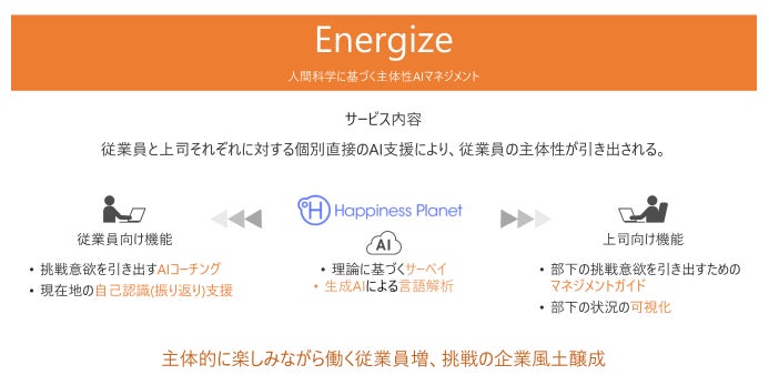 社員の主体性を引き出すAIマネジメントツール「Happiness Planet/Energize」のβ版をリリース