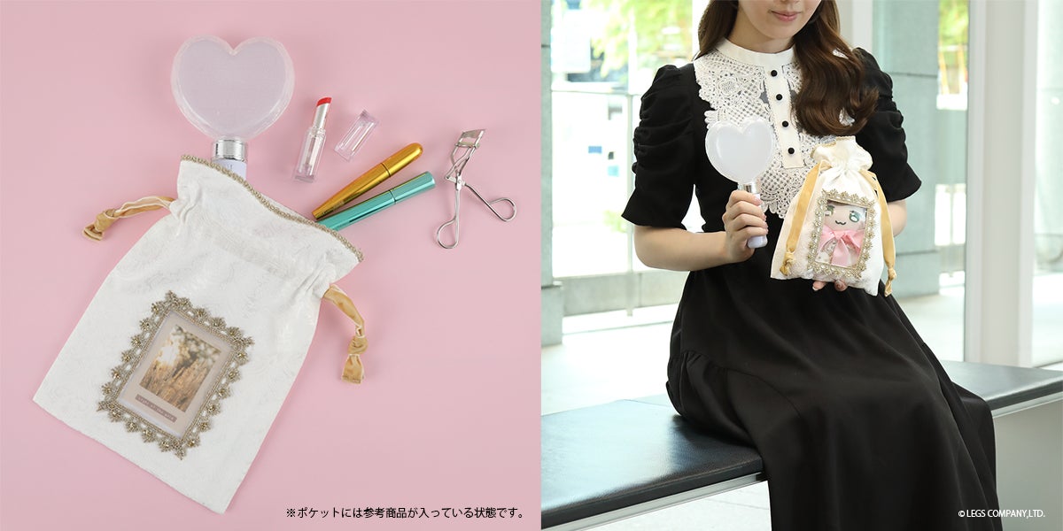 うさみみ王子さまぬい服と同デザインの推し活マルチポーチ。前面には透明のポケットがあり、中に入れた物が見える仕様!また、ポケット部分にはカード型商品を収納可能なので、お気に入りのカードを見せながら持ち歩きができます。程よいサイズで、ペンライトやリングライト、コスメ等、現場に不可欠なグッズを一つにまとめることができます。