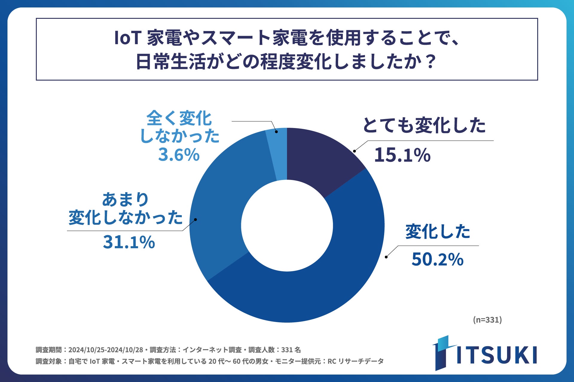 約65%の人がIoT家電・スマート家電を使用することで、日常生活に変化を感じている!株式会社ITSUKIが、「IoT家電・スマート家電の利用実態」に関する調査を実施!