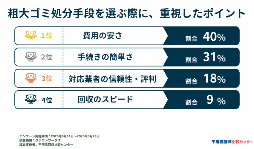 群馬県で粗大ゴミの処分手段を選ぶ際に、もっとも重視したポイントは何ですか?